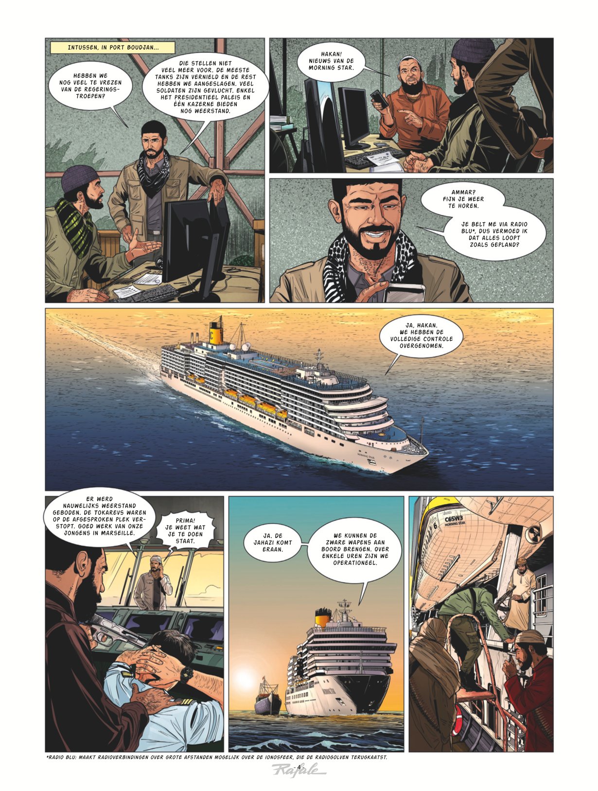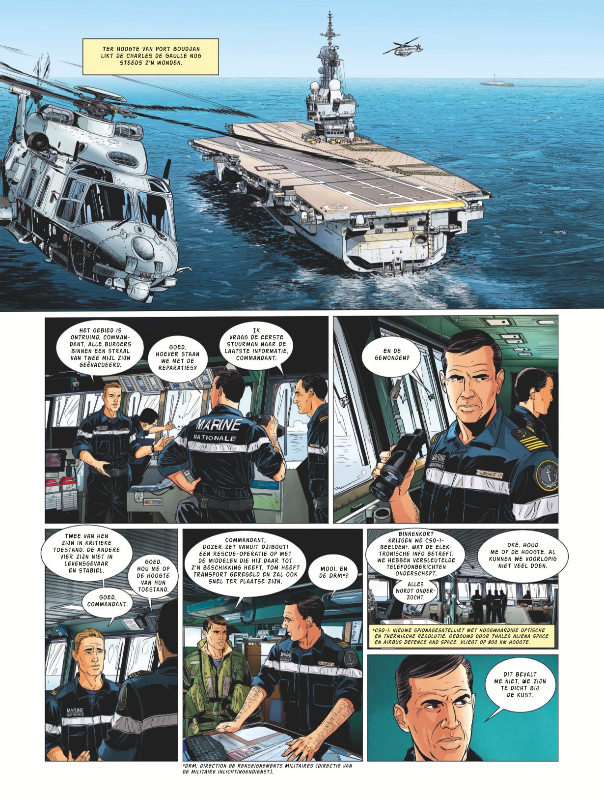 verwacht 13/03/2024 Het vliegdekschip Charles-de-Gaulle zit vast bij Port Boudjan, terwijl de terroristen hun plan om het te vernietigen doorzetten en een passagiersschip kapen om het te komen rammen. Ondertussen is Tom met Roxanne naar de luchtmachtbasis van Djibouti gevlucht. Daar vindt hij hulp voor een reddingsoperatie om zijn vriend Tank te bevrijden, die in handen is van de jihadisten. De tijd dringt, want de jihadisten dreigen hem te executeren. Terwijl ze in Port Boudjan zijn, ronden de terroristenleider Azad Korgan en zijn technici het nazicht en de herstelling van de beschadigde Rafale af. Ze laten harde doelbommen van een ton afleveren, om de genadeslag voor de Charles-de-Gaulle voor te bereiden... Superspannende vliegtuigstrip met verhalen die dicht op de actualiteit zitten. Scenario van Frédéric Zumbiehl (Buck Danny Classic). Tekeningen van Loute (Alfa - Eerste wapenfeiten).