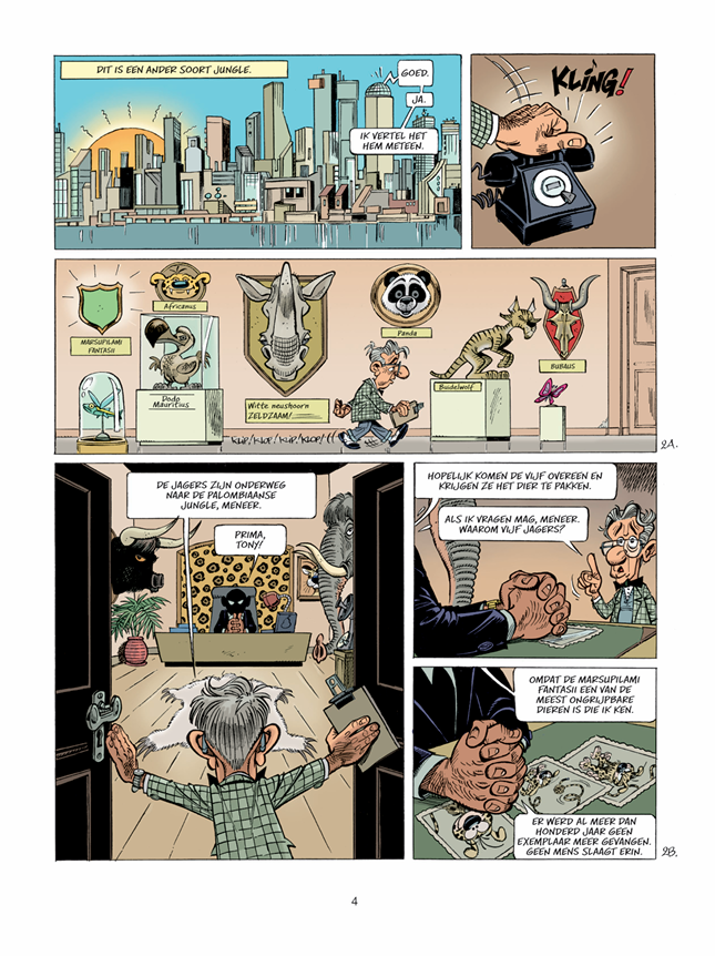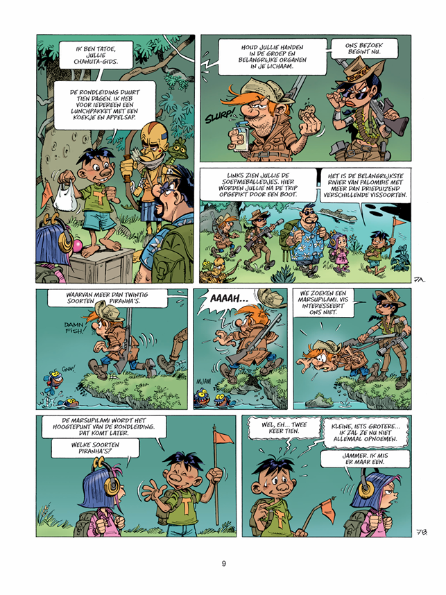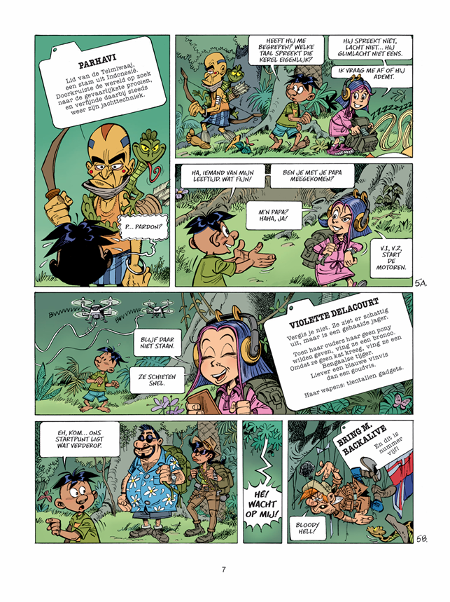 Ze zijn met vijf. De vijf beste jagers ter wereld worden door een mysterieuze opdrachtgever naar Palombië gestuurd, met één missie: een marsupilami vangen! Backalive, een bekende vijand van de Marsu, laat zich dit keer bijstaan door de verschrikkelijke Estefania Forbalez, de zachtmoedige Léon de Bourgogne, de wrede Parhavi en de jonge Violette Delacourt met haar drones. De marsupilami lijkt kansloos tegenover zo’n vastberaden team met een haast oneindig arsenaal aan jachttechnieken. Bovendien worden de vijf gegidst door Tattoo, een jonge chahuta die thuis is in de jungle en aan de kant staat van de jagers… of niet?