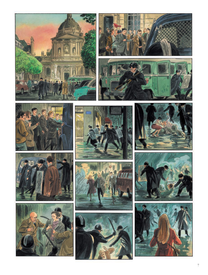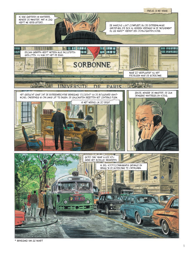 Maart 1968. Overal in de wereld komen jongeren op straat voor vrijheid en tegen oorlog. In Frankrijk blijft het oorverdovend stil. Le Monde kopt zelfs 'Frankrijk verveelt zich ...'. Tot het Quartier Latin, de studentenwijk van Parijs, vlam vat en heel Frankrijk in lichterlaaie zet. Vier jongelui met heel verschillende achtergronden raken meegesleurd in het revolutionaire tumult. De mythische uitbarsting maakt ook bij hen heftige gevoelens los. De coming of age van vier jongeren ten tijde van de Parijse studentenrevolte van mei '68. Warnauts doet de teksten, Raives verzorgt de kleuren en tekenen doen ze samen. Indrukwekkend oeuvre: Venetiaanse suites, Na de oorlog, Nieuwe tijden, ...