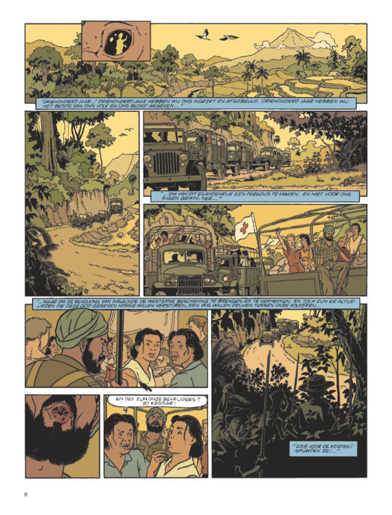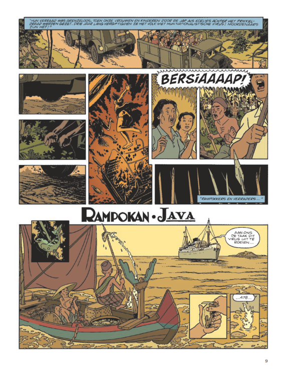 1946. De Nederlanders die uit Indonesië zijn verjaagd door de Japanse inval, erkennen de onafhankelijkheidsverklaring van hun oude kolonie niet en willen er opnieuw de macht grijpen. De tussenkomst van het koloniale beroepsleger is niet genoeg: er wordt extra mankracht opgeroepen om de 'terroristen' te bekampen. Johan Knevel neemt vrijwillig dienst. Hij wordt louter gedreven door zijn gevoelens: hij wil weten wat er van zijn Indonesische baboe of nanny is gekomen. Maar het weerzien wordt allesbehalve wat hij ervan verwacht had ... Peter Van Dongen is een meester van de Klare Lijn. Als kind van een Nederlandse vader en een Indonesische moeder raakt de geschiedenis van Indonesië hem persoonlijk. Rampokan is het resultaat van hoe hij komaf maakt met dat gegeven. Het verhaal verscheen oorspronkelijk in twee delen: Java in 1998 en Celebes in 2004. Nu verschijnt het als één verhaal voor het eerst in kleur in Dupuis' prestigieuze auteurscollectie Vrije Vlucht.