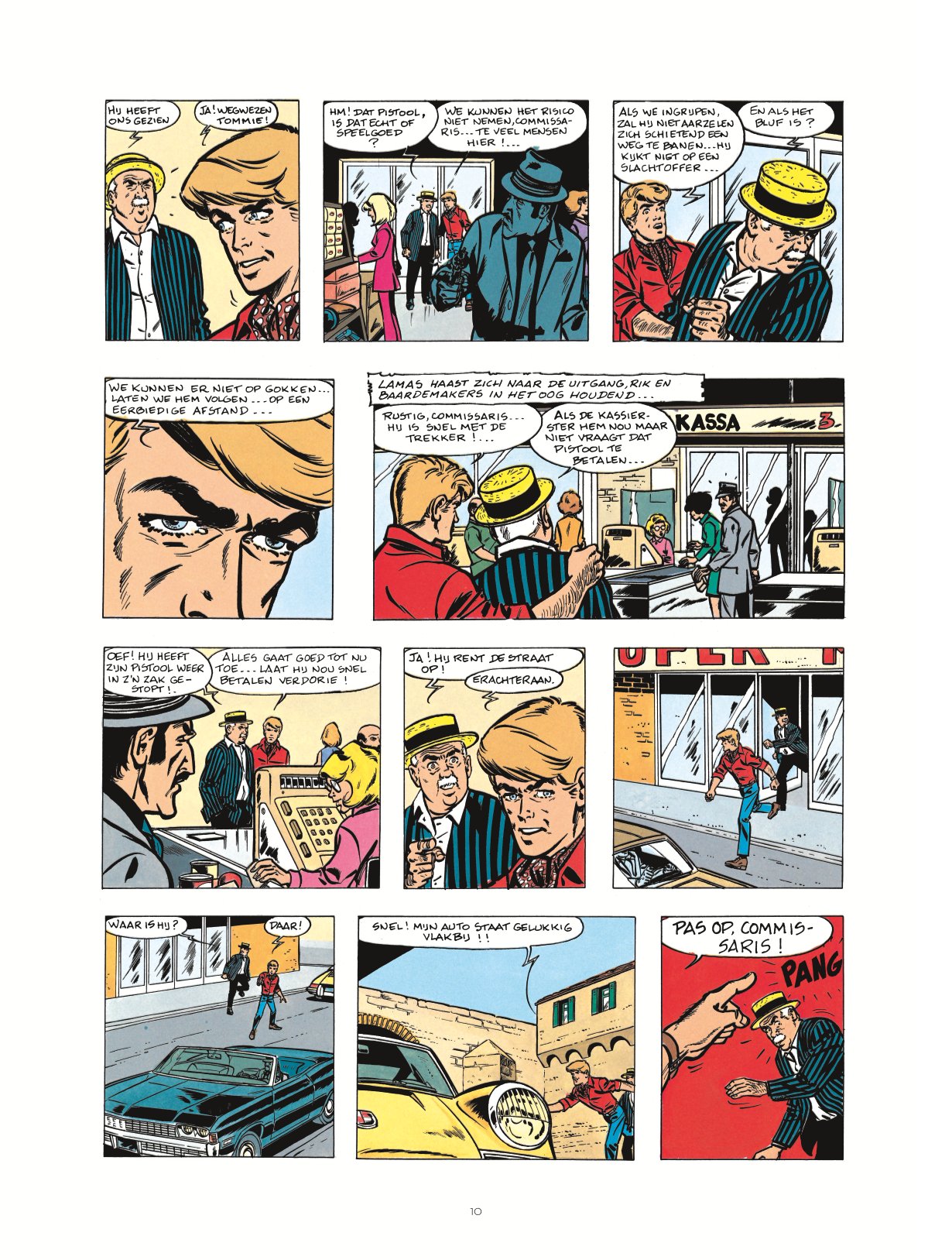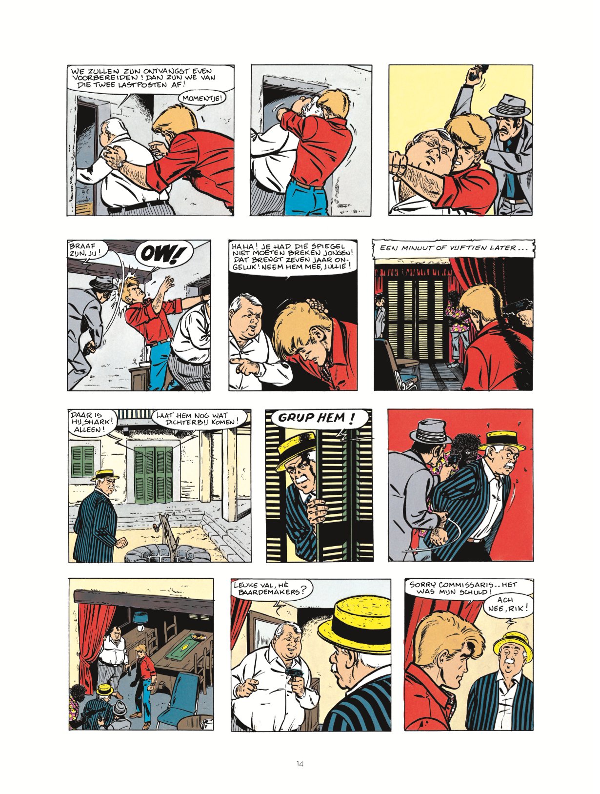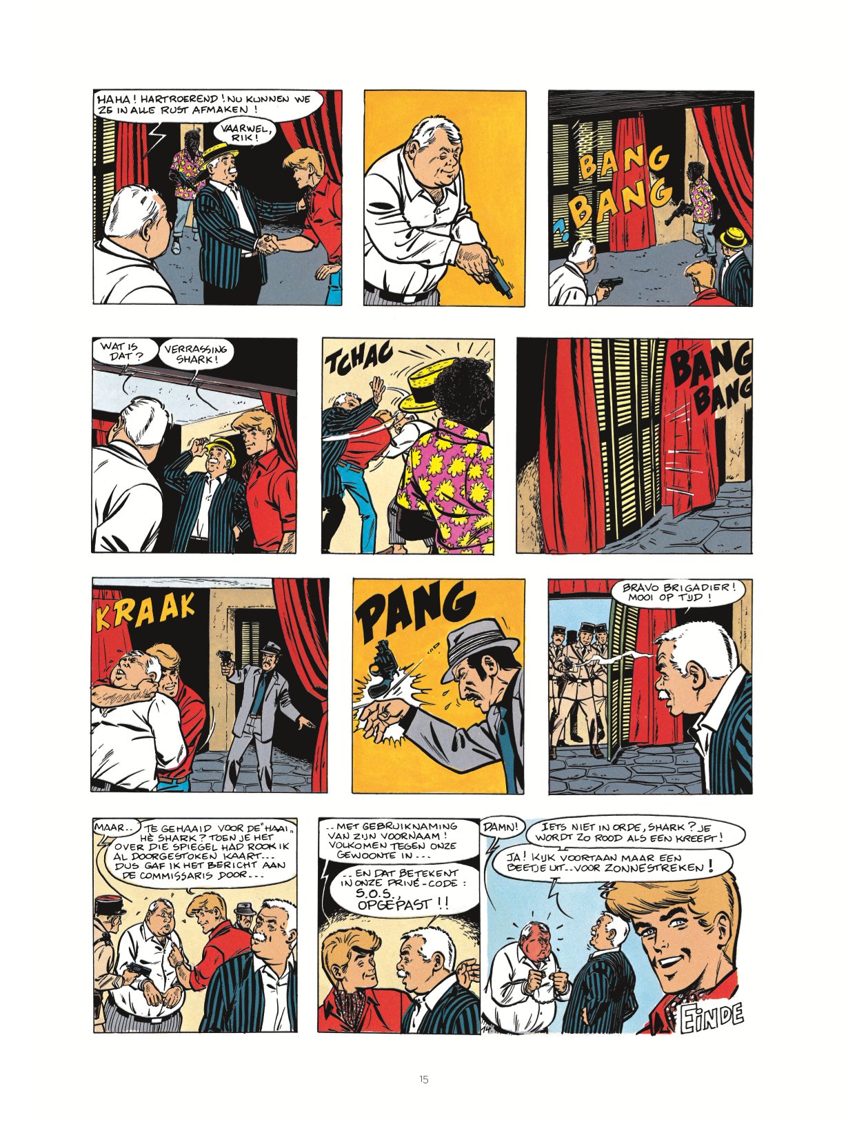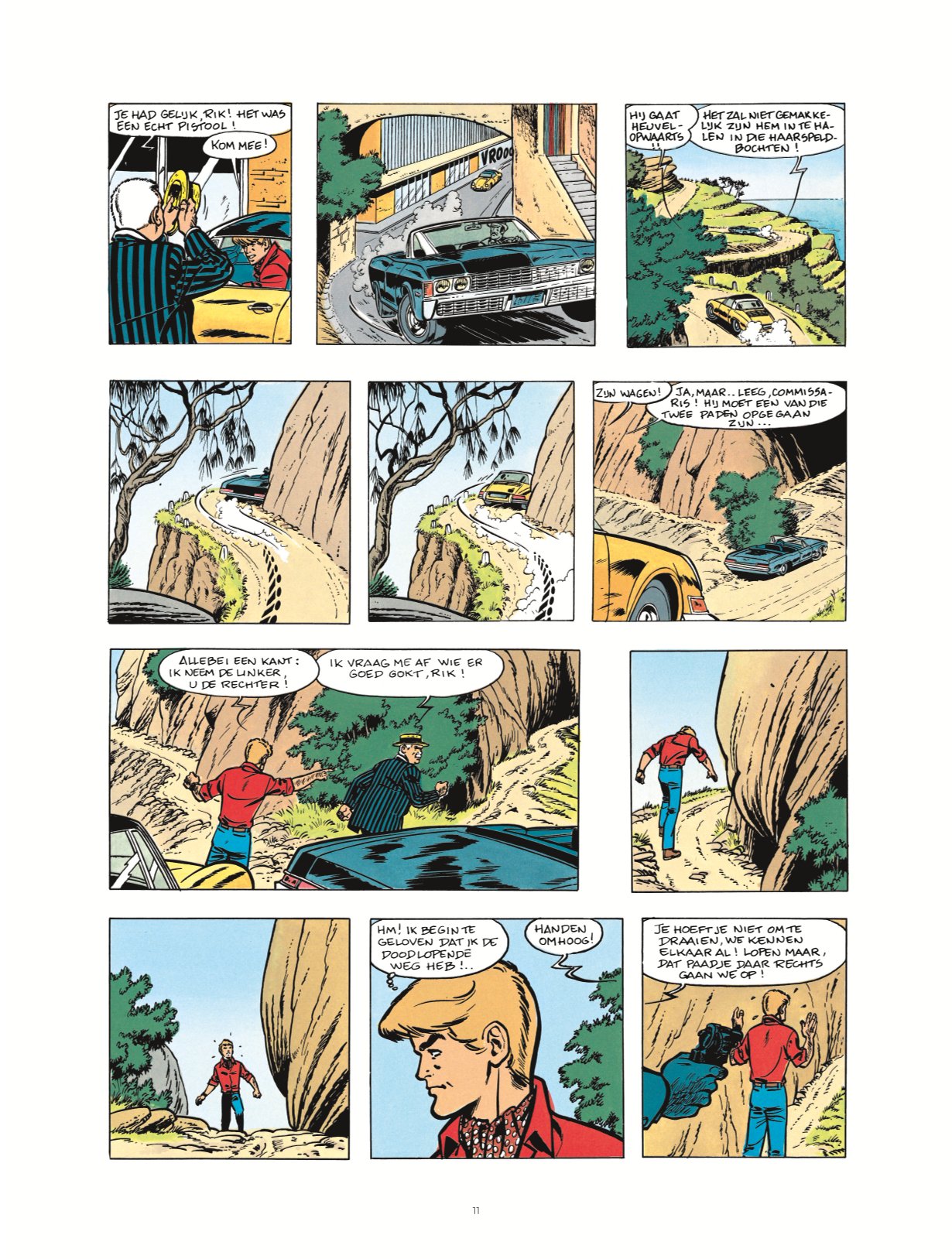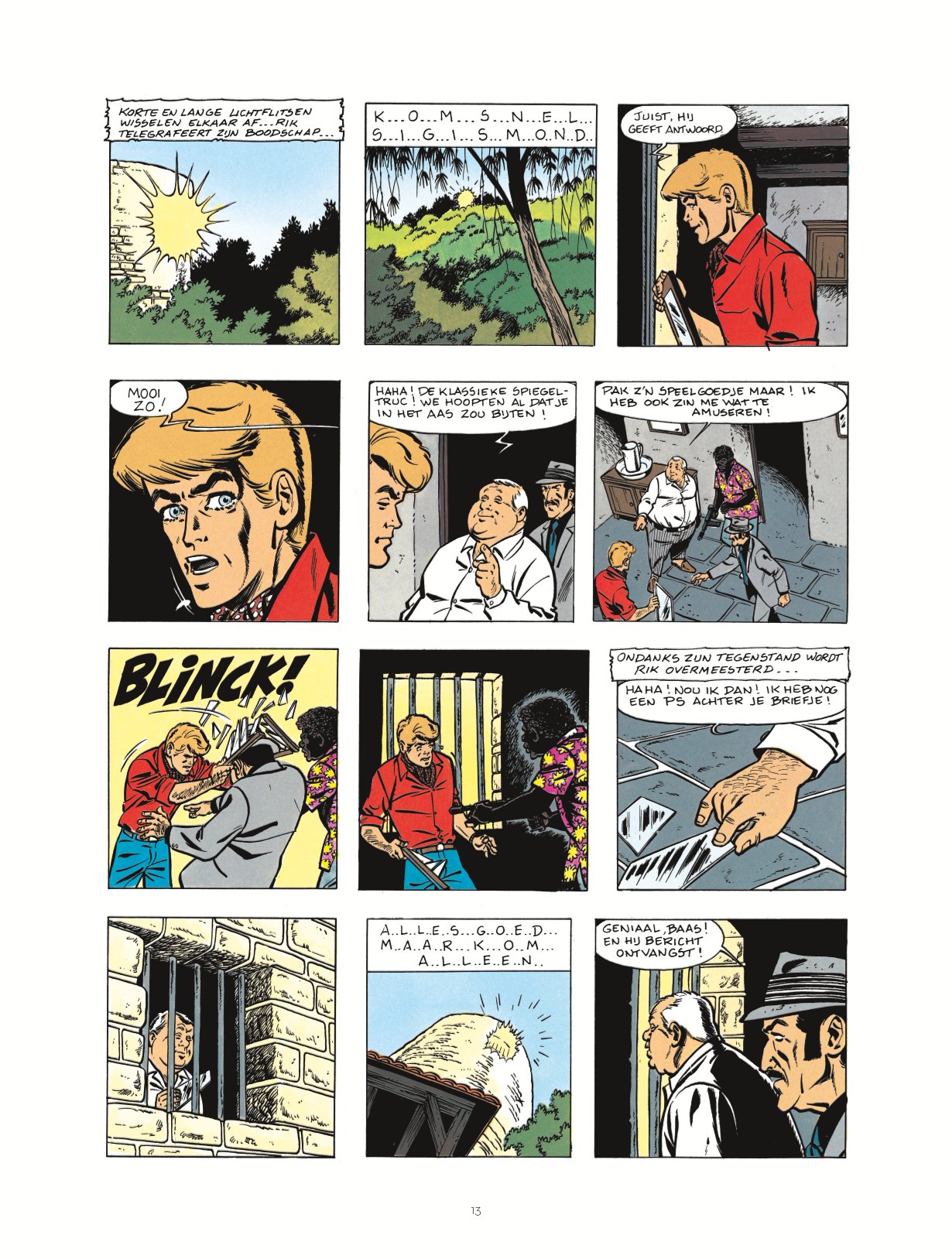 Wie kent hem niet, de beroemde journalist-detective van de stripwereld: Rik Ringers! Klassieke onderzoeken, sciencefiction, schijnbaar fantastische verhalen: doortastend en scherpzinnig baant de onstuimige verslaggever van De Wachter zich een weg langs alle gevaarlijke valstrikken op zijn pad. ntegraal Publicatie: 2024, deel 9 van twintigdelige reeks Uitgeverij: Le Lombard Pagina's en uitvoering: 224, hardcover Dossier: 4 pagina's. Artikel met foto's over twee jubileumfeesten voor Rik Ringers. Tussen de korte verhalen staat nog een met foto's geïllustreerd artikel over een event waarbij Tibet in een glazen kooi werd opgesloten om een week lang elke dag één strippagina van het verhaal Wie Heeft het Gouden Kuifje Gestolen? te tekenen. Oorspronkelijke albumcovers: Op verkleind formaat op de backcover en de coverillustraties zijn ook nog eens verkleind afgebeeld op de titelpagina's die aan elk gebundeld album voorafgaan. De vier weekbladcovers van Kuifje uit deze periode ontbreken. Compleet: De verhalen in deze bundel staan in chronologische volgorde. Geen oorspronkelijke titelpagina's en backcovers. Gebundelde verhalen* Zonnestreken (7 pagina's uit 1970 in Tintin Sélection nummer 5, gebundeld in deel 31: K.O. in 9 Rounds) Het Dorp van de Angst (11 pagina's uit 1970, gebundeld in deel 31: K.O. in 9 Rounds) De Spookmoordenaar (8 pagina's uit 1970 in Tintin Sélection nummer 9 en uit 1971 in Pep Parade nummer 5, gebundeld in deel 31: K.O. in 9 Rounds) Stilte... Ziekenhuis! (8 pagina's uit 1971 in Tintin Sélection nummer 12 en uit 1972 in Pep Parade nummer 6, gebundeld in deel 31: K.O. in 9 Rounds) Een Brief voor Baardemakers (8 pagina's uit 1973 in Tintin Sélection nummer 19, gebundeld in deel 31: K.O. in 9 Rounds) Dreiging in het Huis (8 pagina's uit 1973 in Kuifje Pocket nummer 1, gebundeld in deel 31: K.O. in 9 Rounds) Wie Heeft het Gouden Kuifje Gestolen? (7 pagina's uit 1977 in Kuifje Pocket nummer 17, gebundeld in deel 31: K.O. in 9 Rounds) De Gijzelaars (8 pagina's uit 1977 in Kuifje Pocket nummer 17, gebundeld in deel 31: K.O. in 9 Rounds) Rik Ringers in de Val (12 pagina's uit 1977 in Kuifje Pocket nummer 16, gebundeld in deel 31: K.O. in 9 Rounds) Deel 32: De Zwarte Rechtbank (44 pagina's uit 1980) Deel 33: Het Schandaal Rik Ringers (44 pagina's uit 1980) Deel 34: De Nacht der Vampiers (44 pagina's uit 1980-1981) * De jaartallen zijn die van de eerste publicatie in Tintin Sélection, Pep Parade, Kuifje Pocket en Kuifje bron ssz