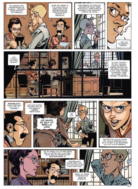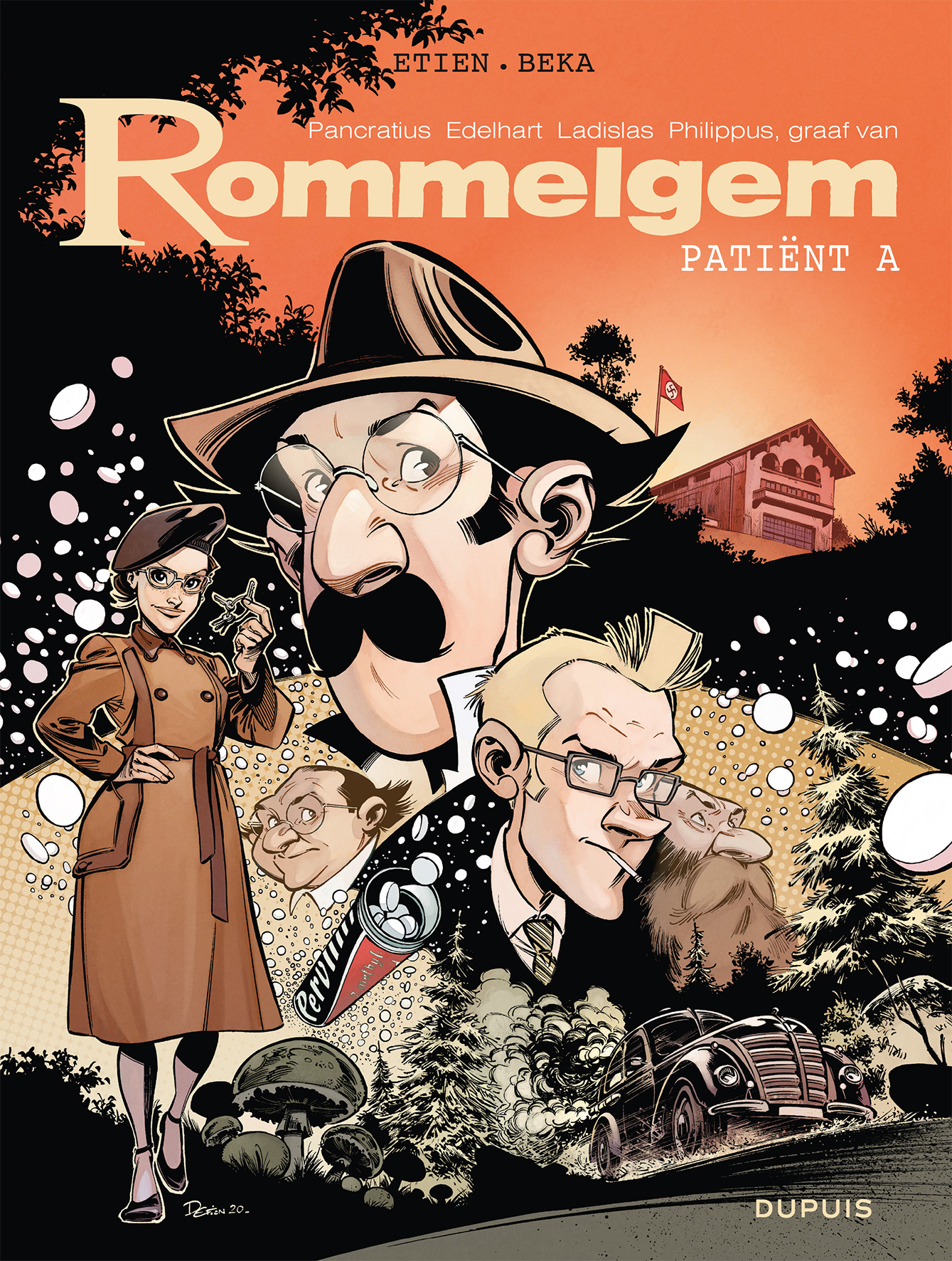 Gemiddelde score 3 / 5Fans van Robbedoes worden de laatste tijd in de watten gelegd, met spin-offs zoals ‘Mademoiselle J’ en het onlangs verschenen ‘Pacific Palace’ waarvan je ook een recensie op Stripweb terug vindt. Het vorige album liet al blijken dat dit niet de zoveelste spin-off was van de Robbedoes-reeks. Toen werd duidelijk dat de professor ook een eigen reeks waardig is, waarbij terug gekeerd wordt naar zijn jongere jaren tijdens de Tweede Wereldoorlog. Dit verhaal sluit daar verder op aan. De graaf van Rommelgem en Blair, zijn vriendin, genieten na in Londen tot hun rust verstoord wordt door een noodkreet van 2 vrienden van Rommelgem. Die moeten in opdracht van de nazi’s ongewenste experimenten uitvoeren. Al snel gaan ze richting Berlijn in Duitsland, waar de 2 geleerden zitten. Als ze 1 van de bevriende geleerden vinden wordt duidelijk dat de nazi’s opgepept worden door een drugs en zo dagenlang aan het front kunnen strijden. In hun avontuur om de 2 geleerden terug te brengen naar Londen, stootten ze op oa Sprotzek (uitvinder van de atoombom), Göring en Adolf Hitler. Die laatste zorgt meteen ook voor de titel van dit album, maar laatst genoemden brengen verder weinig tot geen inbreng in dit verhaal. Het scenario is bedacht door Béka (een samentrekking van het echtpaar Bertrand Escaich en Caroline Roque), onder andere bekend van de nieuwste Blauwbloezen en Dance Academy. Echter, buiten 1 uitweiding hoe de drugs werkt -om het (wetenschappelijk) niveau op te krikken- voelt het verhaal vrij oppervlakkig aan. Het leest allemaal vlot, maar in tegenstelling tot het eerste album had dit scenario beter ook wat drugs toegekend gekregen. De tekeningen zijn daarentegen van een hoog niveau. Etien David, die ‘Op zoek naar de tijdvogel’ en ‘De vier van Baker street’ op zijn palmares heeft staan, tekent opnieuw alles uitgebreid en gedetailleerd uit: van de expressies op de gezichten van de personages tot de sfeervolle omgevingen waardoor je je in de jaren ’40 waant. Maar alles staat of valt met een degelijk scenario. Het eerste album was verrassend goed, dit album gaat jammer genoeg niet verder op deze succesformule. Een gemiste kans.