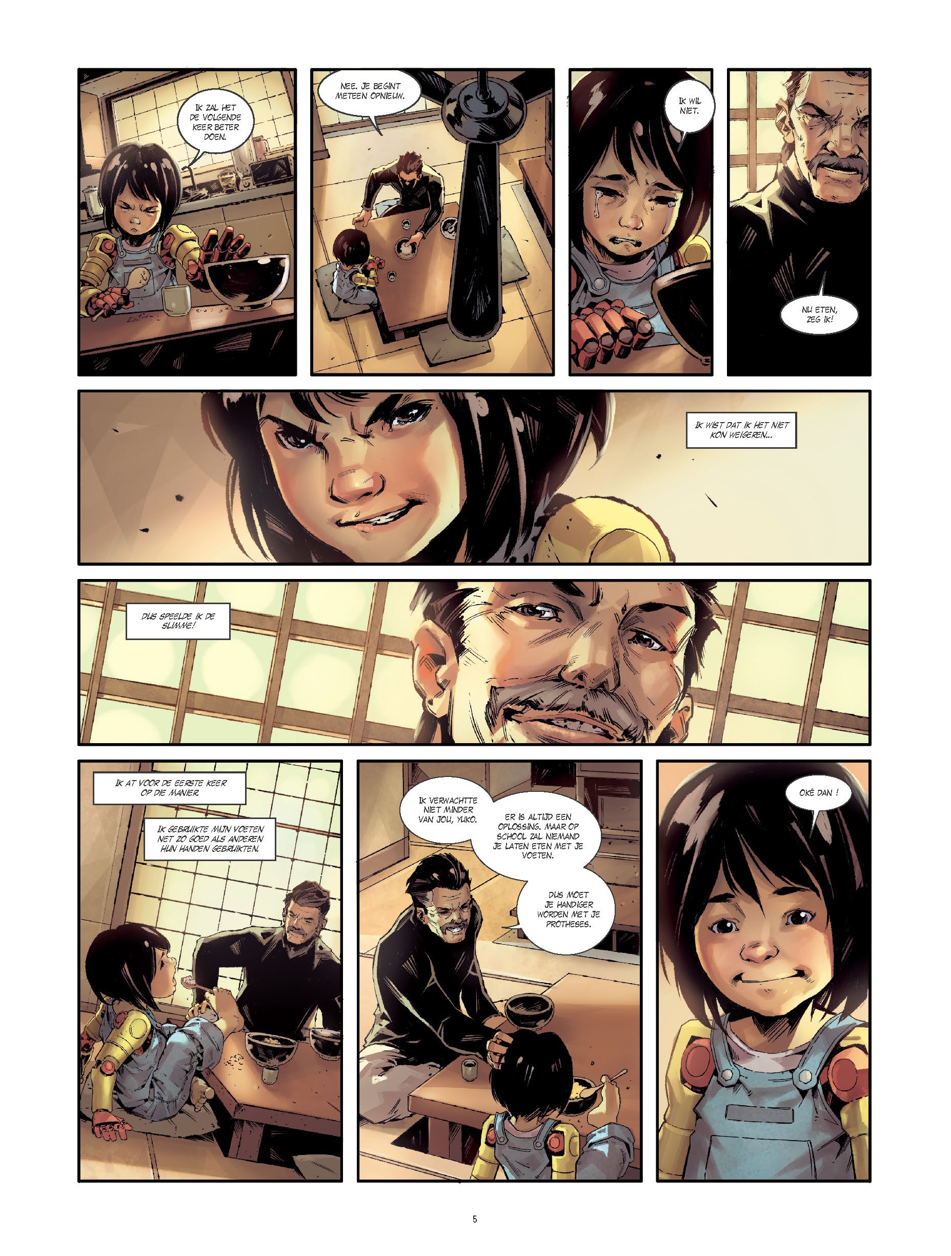 Eerste deel van een explosief cyborg-vijfluik! In een wereld waar enkel de rijken toegang hebben tot geavanceerde protheses, durft Russel, een briljant mechanobiotechnoloog, het systeem uit te dagen. Hij verandert de kansarmen in... cyborgs! Yuko werd gehandicapt geboren en moet het stellen met eenvoudige plastic prothesen, bleke surrogaten voor wie door de maatschappij vergeten is. Ze leeft samen met Akira, een meester in krijgskunsten en trainer van de Trackers, huurlingen die in dienst staan van de dictator Tudor. Wanneer een nieuwe wet de euthanasie van “onvolmaakte” mensen verplicht maakt, slaat de vlam in de pan en wordt de stad meegesleurd in chaos. Yuko en Akira moeten vluchten, opgejaagd door de nietsontziende Trackers. Hun gevaarlijke reis leidt hen uiteindelijk naar Russel, de enige die het tij misschien kan keren. Florent en kleuren van Kael Ngu , indrukwekkende tekeningen van Jean-Luc Istin Met krachtige scenario’s van ontvouwt zich een explosief verhaal over onderdrukking, verzet en hoop in een cyborg-toekomst.