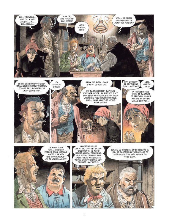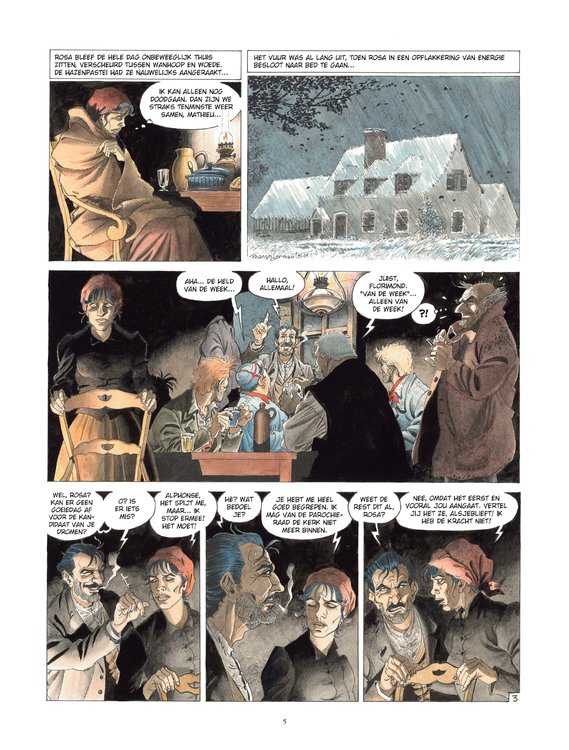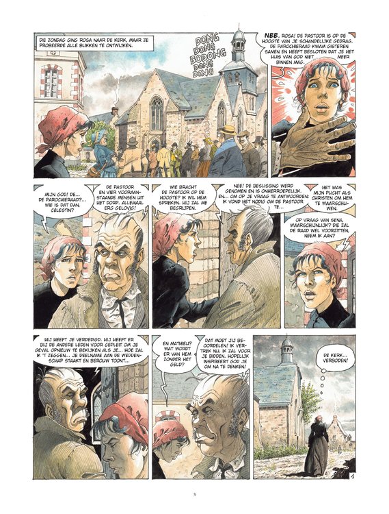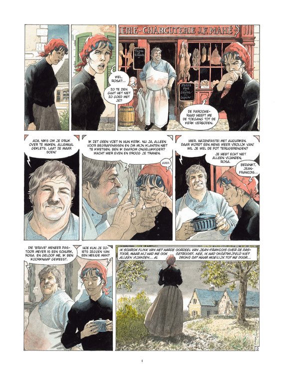 Het meesterwerk van François Dermaut. Rosa is een vrijgevochten vrouw, maar ze zit in een lastig parket. Door de weddenschap die ze heeft gesloten met de ‘mannen’, mag ze van de pastoor de mis niet meer bijwonen. Moet ze de wedstrijd afblazen om haar ziel te redden? Maar wat gaat er dan gebeuren met haar arme Mathieu, zonder het geld om voor het sanatorium te betalen? Na wat rondneuzen, ontdekt Rosa dat het de schuld is van het gekonkelfoes van Séna, die in haar eer gekrenkt was. Rosa wil zich niet laten doen, en kan rekenen op de goede mensen van het dorp om haar te hulp te schieten. Ze wil zich vooral even onvermurwbaar tonen als Séna. Rosa is tegelijk een sappig plattelandsverhaal en een portret van de geëmancipeerde vrouw aan het begin van de XXe eeuw. Het toont ons een reeks doodeerlijke personages die niet op hun mond zijn gevallen. François Dermaut, die we vooral kennen van historische verhalen, bereikt hier, met het einde van dit tweeluik, een artistiek hoogtepunt.. In dezelfde sfeer als Magasin General.