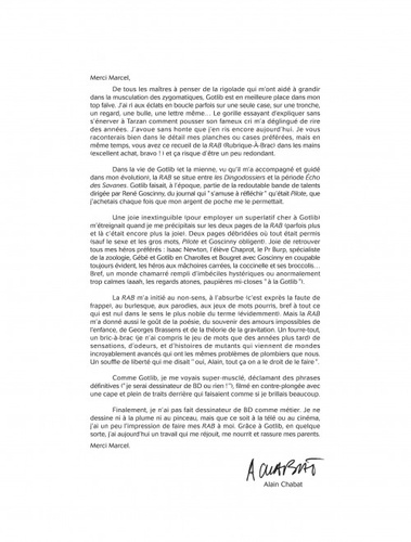 De tous les maîtres à penser de la rigolade qui m'ont aidé à grandir dans la musculation des zygomatiques, Gotlib est en meilleure place dans mon top faîve..." Alain Chabat.