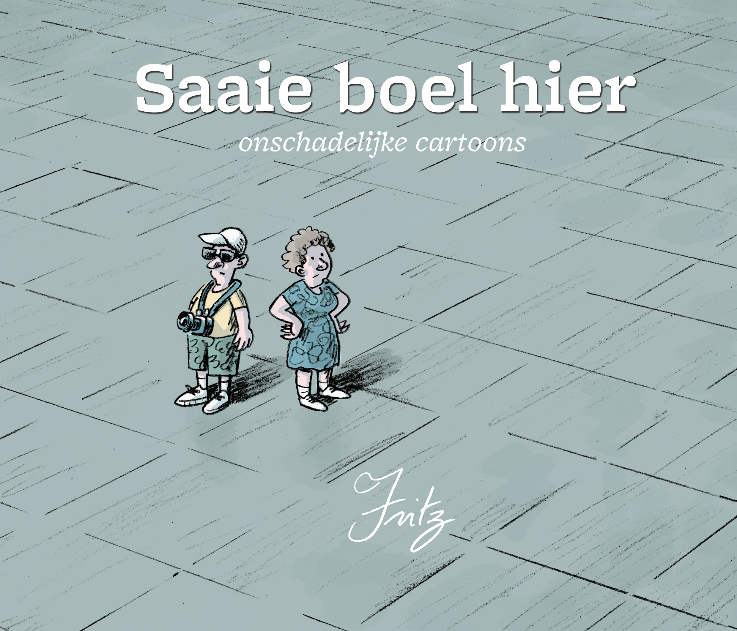 Saaie boel hier is een bundeling tijdloze cartoons, waarvan de meeste verschenen in De Standaard Avond. Cartoonist Fritz (Van den Heuvel) heeft een lange staat van dienst in de wereld van strips, cabaret, radio en televisie. Onder zijn echte naam Joris Vermassen publiceerde hij de bekroonde beeldoman Het zotte geweld.