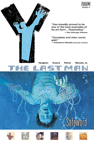The fourth collection of the acclaimed Vertigo series, Y: THE LAST MAN: SAFEWORD reprints issues #18-23 of writer Brian K. Vaughan's and artist Pia Guerra's dynamic series. As the Last Man on Earth and his companions continue to head West, the story takes a detour into the psychological.In the care of a fellow Culper Ring member, Yorick Brown is forced to confront his tremendous feelings of survivor guilt that lead him to constantly put his life in danger. Once on the road again, the group runs up against a literal roadblock in Arizona, where the female remains of the Sons of Arizona militia have cut the interstate to keep out any vestiges of the U.S. government.