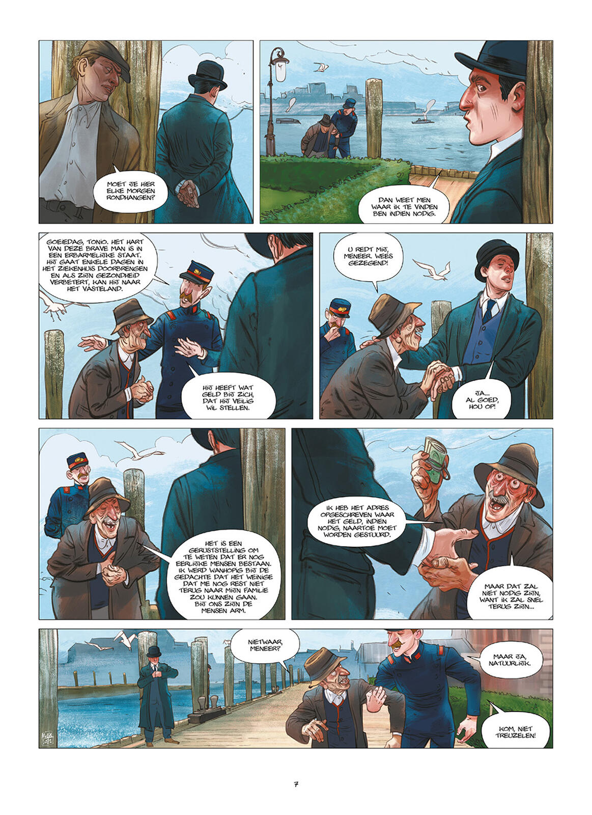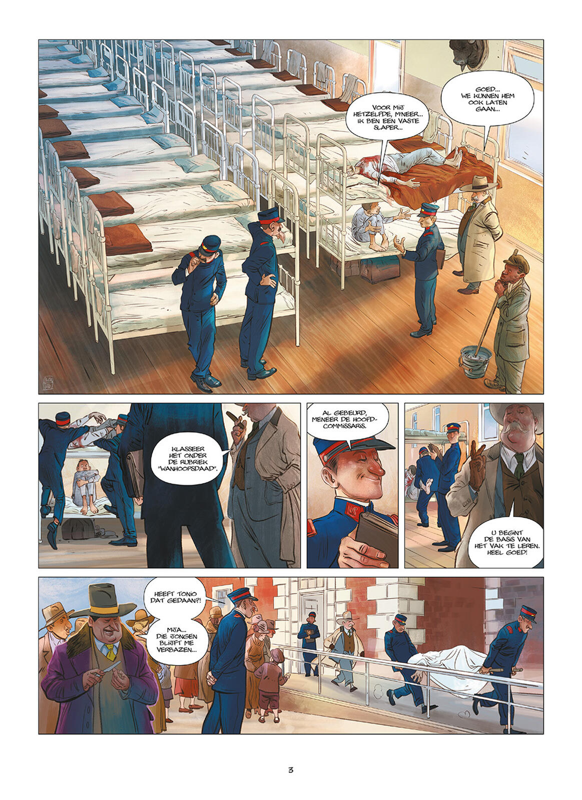 Gemiddelde score 2 / 5Een klein jaar geleden waren we nogal gek op het eerste deel van dit tweeluik over Ellis Island, het legendarische eilandje in de baai van New York, waar de Europese migranten gecontroleerd werden voordat ze definitief voet aan wal mochten zetten op Amerikaanse bodem. Ook in dit tweede deel volgen we de avonturen van de Siciliaanse gelukzoeker Tonio die zijn klein dorpje achtergelaten heeft om zijn Amerikaanse droom te verwezenlijken. Dat hij eigenlijk een speelbal in de handen van de maffia is, begint heel geleidelijk tot hem door te dringen. Als hij zijn eigen hachje en dat van de familie aan het thuisfront wil redden, moet hij immers fungeren als een gewiekste ritselaar en daar is hij niet onverdeeld gelukkig mee. Gelukkig kan hij steeds rekenen op de hulp van zijn vriend Giuseppe die hem regelmatig behoedt voor een persoonlijke karaktermoord. En dan hebben we ook nog de mooie Nadia. Zal zij eindelijk Tonio’s liefde beantwoorden en ook naar Amerika vertrekken? Nooit geschoten is altijd mis, zegt een bekend spreekwoord, maar Philippe Charlot vuurt in dit deel zoveel scenariosalvo’s af dat je even naar adem moet happen. Bij een tweede lezing blijken de meeste schoten wel hun doel getroffen te hebben, maar toch zijn er wel wat losse flodders die net iets meer richting hadden mogen krijgen. Miroslaw Urbaniak (Miras, surf hier naar zijn website) is zo’n tekenaar waar we graag meer van zouden zien. Zijn heldere en poëtische retrostijl sprak ons in elk geval erg aan. Jammer genoeg gaat een groot deel van zijn tijd op aan reclametekeningen en is zijn output op stripgebied nog vrij beperkt, zeker voor de Nederlandse taal. Samengevat kunnen we hier spreken van een krachtig tweeluik, dat door een overdaad aan bijkomstige nevenintriges misschien net iets te overladen is om van een echte topper te kunnen gewagen. Schrijven is schrappen en dat geldt ook onverkort voor stripalbums.