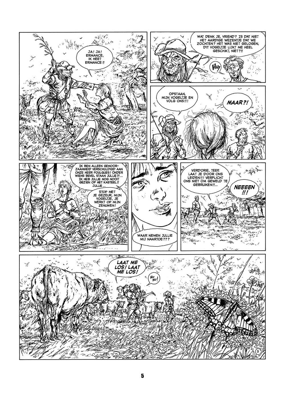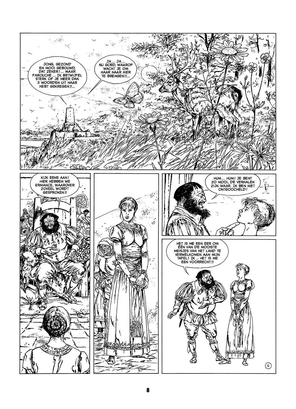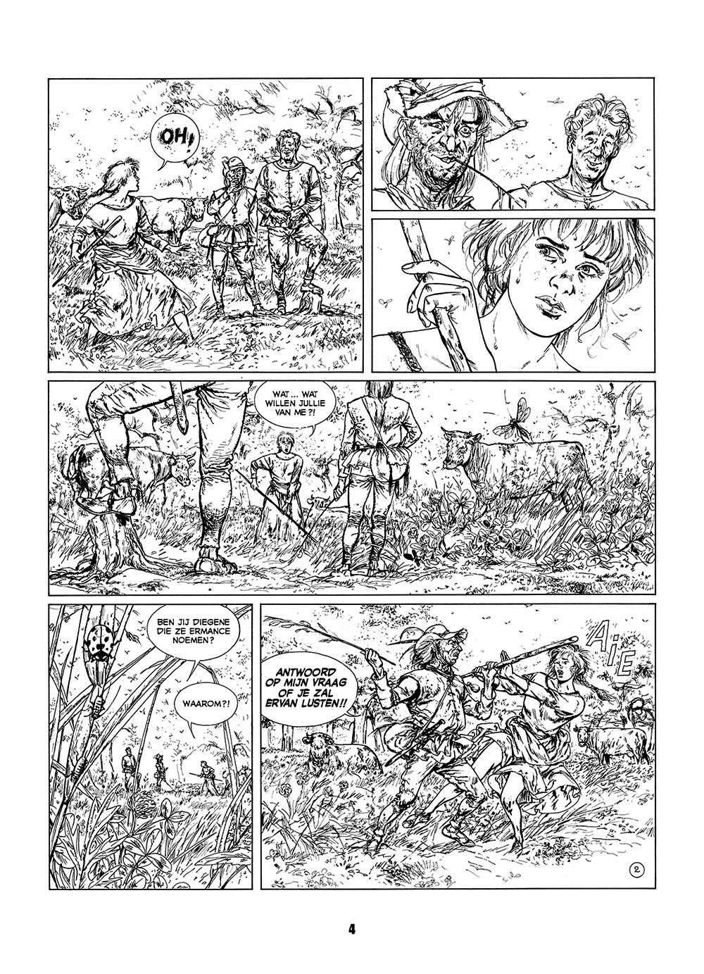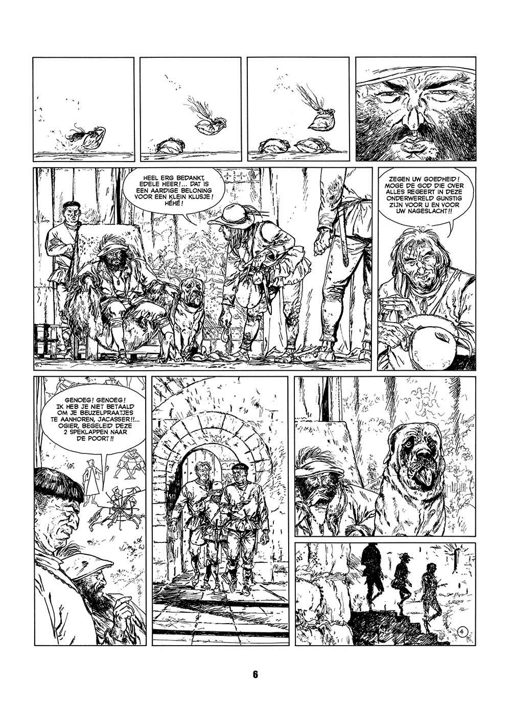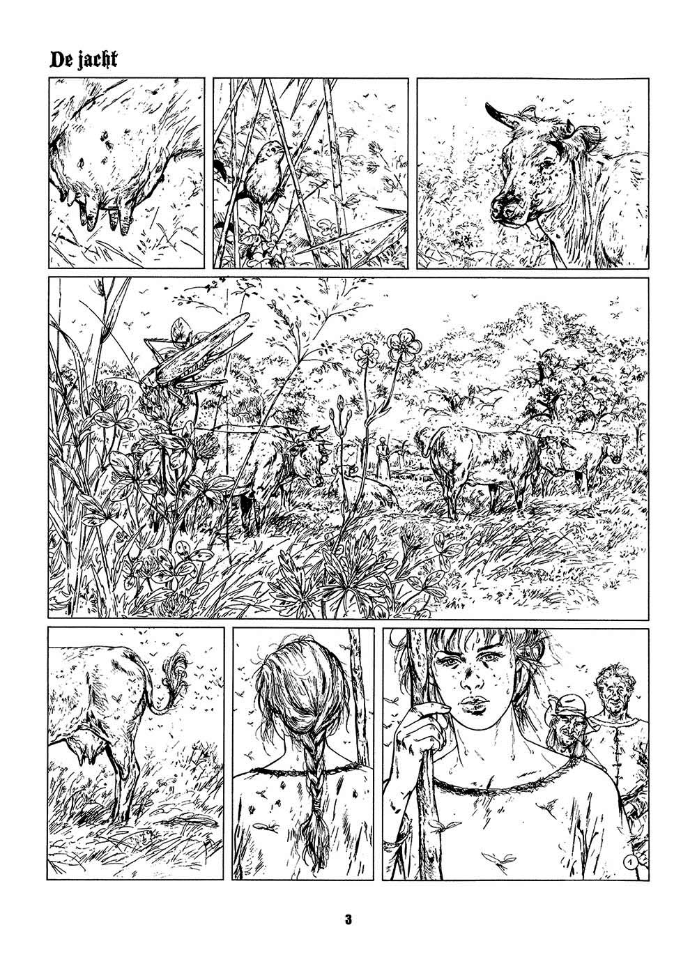 De jacht is na De Pad het tweede album dat van de Luikse striptekenaar Marc-Renier onder de noemer Sagen en legenden verschijnt bij vzw Arcadia. De originele franstalige versie, la Traque, werd in 1988 door Les Editions du Miroir uitgegeven. De jacht is getekend in de realistische stijl die Marc-Renier typeert, en die eveneens terug te vinden is in zijn andere albums en reeksen, zoals die van Jackson, Ijzermasker of Black Hills 1890. De jacht herbergt vijf kortverhalen die zich afspelen tijdens de feodale Middeleeuwen, een donkere periode uit de geschiedenis waarin boeren niet veel meer waren dan eigendom van hun leenheren, en bijgevolg dikwijls de speelbal van hun grillen. In het eerste verhaal, dat tevens de titel draagt van het album, maken we kennis met Ermance, een knappe boerendochter die het hoofd van haar heer op hol doet slaan. Zal ze zijn liefde beantwoorden of verkiest ze haar vrijheid boven een plaats aan diens zijde? Naast De jacht vinden we met Het beest, Mandragora, De opgehangen wolf en Een jas van veren vier verhalen terug die doordrongen zijn van mystiek en bijgeloof.
