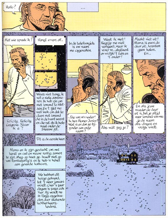 Homer is Vietnam-veteraan en leeft met zijn trauma. In het huis waarin hij zijn jeugd heeft doorgebracht, kijkt hij op oudejaarsavond, ingesloten door de sneeuw en omringd door zijn herinneringen, op de televisie naar een reportage waaraan hij zelf heeft meegewerkt: een groep oorlogsveteranen is twintig jaar later teruggegaan naar het front en verbroedert er met de vijand van toen. Homer probeert op die manier de boze geesten uit zijn hoofd te verdrijven. Felicity is dertien, zegt ze, maar later biedt ze af tot elf. Ze verveelt zich, ze is alleen. Ze telefoneert, draait een nummer, zomaar. Toevallig komt ze bij Homer terecht. De wat brutale en onbekende jonge meid blijkt heel erg uitgeslapen. Ze zet Homer aan het denken en draait, zonder het te willen, het mes nog enkele keren diep in de wonde ... Maar wanneer het gesprek afgelopen is, voelt Homer zich weer rustig en heel sereen.