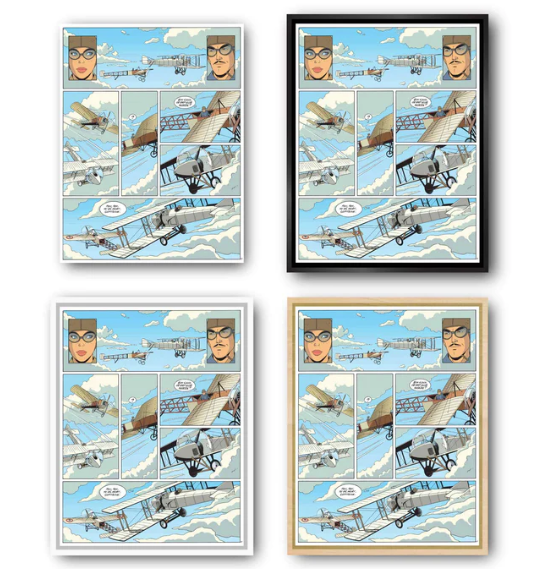 Onze Amerikaanse baklijsten in "L"-profiel worden met de hand in Frankrijk gemaakt van massief hout. Deze frames bieden een elegante esthetiek zonder af te leiden van het kunstwerk. Ze zijn verkrijgbaar in verschillende afwerkingen om te passen bij de sfeer van stripverhalen.