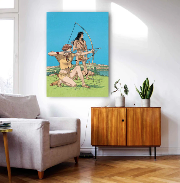 Onze Amerikaanse baklijsten in "L"-profiel worden met de hand in Frankrijk gemaakt van massief hout. Deze frames bieden een elegante esthetiek zonder af te leiden van het kunstwerk. Ze zijn verkrijgbaar in verschillende afwerkingen om te passen bij de sfeer van stripverhalen.
