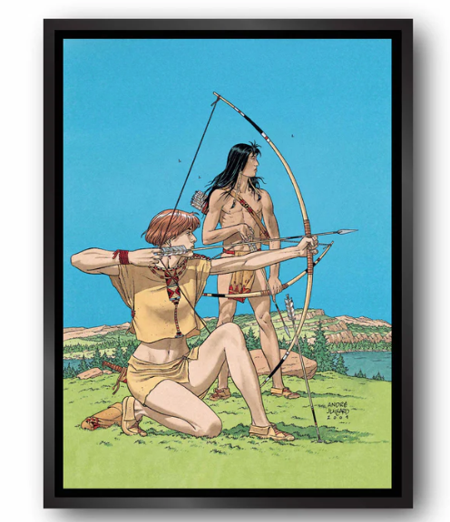 Onze Amerikaanse baklijsten in "L"-profiel worden met de hand in Frankrijk gemaakt van massief hout. Deze frames bieden een elegante esthetiek zonder af te leiden van het kunstwerk. Ze zijn verkrijgbaar in verschillende afwerkingen om te passen bij de sfeer van stripverhalen.
