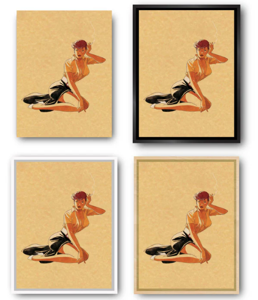 Onze Amerikaanse baklijsten in "L"-profiel worden met de hand in Frankrijk gemaakt van massief hout. Deze frames bieden een elegante esthetiek zonder af te leiden van het kunstwerk. Ze zijn verkrijgbaar in verschillende afwerkingen om te passen bij de sfeer van stripverhalen.
