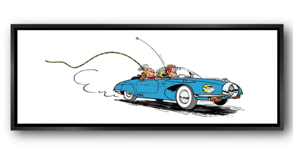 Tekening van André Franquin, een FINE ART-kwaliteit schilderij op een premium polycotton canvas van 350 g/m2, gemonteerd op een houten frame en voorzien van een ophanghaak.