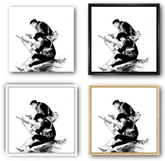 Onze Amerikaanse baklijsten in "L"-profiel worden met de hand in Frankrijk gemaakt van massief hout. Deze frames bieden een elegante esthetiek zonder af te leiden van het kunstwerk. Ze zijn verkrijgbaar in verschillende afwerkingen om te passen bij de sfeer van stripverhalen.