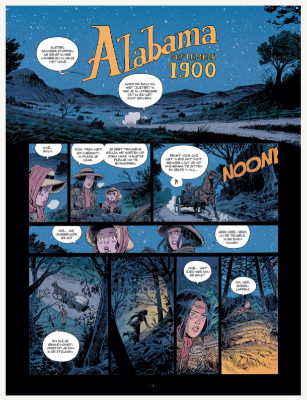 hieronder een interview met Astier, de auteur. Het Venijn, tekeningen én tekst door Astier die we bij ons kennen van het schitterende album “ Zo maak je fortuin in 1940 “ . Dit is zijn eerste Western maar belooft een topper te worden, alle ingrediënten die nodig zijn zitten in dit eerste album vervat: Intriges, spanning, actie, avontuur, wraak, mysteries, . Neem een grote dosis Blueberry, een beetje Comanche en wat Bouncer en je komt ongeveer in de sfeer van HET VENIJN. Het zal verschijnen in 5 delen en op de preview kun je de weg al zien dat Emily zal nemen naar New Haven. Haar reis is gekoppeld aan echt gebeurde verhalen in die tijd en dit maakt het ook zeer geloofwaardig. Emily het hoofdpersonage draagt een geheim verleden mee dat we aan de hand van flash-backs leren kennen. Emily ( geïnspireerd op het personage van Claudia Cardinale in de film “ Once upon a time in the West” is een sterk karakter die graag de geweren laat knallen en niet moet onderdoen voor de mannelijke cowboy’s maar anderzijds ook interesse heeft in literatuur. Dit maakt haar bijzonder boeiend. In de strip zit tevens haar schrift met leuke foto’s en details over de periode waarin de strip zicht afspeelt, namelijk de periode van Butch Cassidy en The Kid, de periode van de Pinkerton Agency ( Trouwens de 2 agenten die in de strip voorkomen hebben echt bestaan). Verschijnt in softcover en hardcover bij Daedalus. De hardcover is gelimiteerd, reserveren hoeft niet bij stripweb, we zorgen dat we iedereen kunnen voorzien van dit super album, inschrijven kan wel en dan houden we je als eerste op de hoogte Korte inhoud 1900, Oil Town, Ohio. Op deze smerige aarde, waar modder en ruwe olie zich vermengen, verdient iedereen zijn kost met het zwarte goud. Het is de volgende bestemming van Emily die in Oil Town aankomt in het gezelschap van de kleine Claire en Susan, een vrouw die ze op haar weg heeft gered. Ze gaat er aan de slag als lerares, met Mary Mc Cartney als schuilnaam. Zo hoopt ze Drake, de tirannieke oliemagnaat van de stad, te benaderen en te misleiden. Maar ze houdt er helemaal geen rekening mee dat hij haar verwachtte! Emily wordt ontmaskerd… en door een nieuw stukje informatie over haar moeder raakt ze volledig van de kaart. Het Pinkerton Agency, een handvol premiejagers… het lijstje met mensen die achter haar aanzitten wordt steeds langer. Slaagt Emily erin uit de greep te blijven van haar tegenstanders en haar moeder te wreken? Hoe heb je het verhaal uitgebouwd? Zoals vaak, als je een verhaal schrijft, zijn er scènes die vanzelf ontstaan, als korte filmscènes die zich afspelen in mijn hoofd. Ik voel dan dat ze als basis en als steunpilaren zullen dienen voor mijn verhaal. Er ontstaat een soort wisselwerking tussen de doordachte helft van de scenarist die zijn universum construeert, zijn scenario opbouwt... en de droomsequenties die hem de houdingen, de opbouw, de situaties, de verhou - dingen tussen de personages en dergelijke influistert... Ik had dus het hele verhaal bedacht, maar ik had nog geen idee over het aantal delen dat ik nodig zou hebben om het te vertellen. Ik heb het hele verhaal uit de doeken gedaan aan Nadia Gilbert, mijn uitgeefster, met de rode draad en de flashbacks, en zij zei me dat ik ten minste vijf delen zou nodig hebben. Je verhalen bulken van de (onverwachte) wendingen, waar haal je je inspiratie? Ik weet niet precies waar mijn inspiratie vandaan komt. Al wat ik heb gezien, gehoord, beleefd, dient als inspiratiebron voor mijn verhalen. En wanneer ik de personages begin vorm te geven, met hun karakter, hun achtergrond, worden ze vaak autonoom in mijn geest. Als ze in een bepaalde situatie verzeild geraken, zal dat hun reactie zijn, die dan weer tot dat resultaat leidt. Emily rijdt in het derde deel niet meer alleen rond... Die personages ontmoet ze onderweg, net zoals ik ze onderweg tegenkwam bij het verzinnen van het verhaal. Claire is een soort afspiegeling van de turbulente kindertijd van Emily, ze zorgt ervoor dat Emily kritisch naar zichzelf kan kijken, en haar moederlijke kant komt ook wat naar boven. Susan – die Emily in dit nieuwe deel ontmoet – geeft een beeld van het leven van voor - malige slaven na de Secessieoorlog en het zogenaamde verdwijnen van de slavernij... Ik verzin die personages eerst, omdat het verhaal ze nodig heeft, maar nadien groeien ze in mij en worden ze belangrijker, zowel voor mij als voor het verhaal. Waar heb je je documentatie gehaald? Het leven van Emily moest passen in de grote Geschiedenis van de Verenigde Staten, die periode moest ik dus in detail bestuderen. Als ik aan een nieuw project begin, voer ik altijd uitgebreid onderzoek, op het internet, Wikipedia. Ik bestel boeken, bekijk films, documentaires. Dan laat ik al die informatie insijpelen en schrijf ik verder. Ik check bepaalde informatie en vergelijke verschillende bronnen om er zeker van te zijn dat die gebeurtenis zich inderdaad op die plek op dat moment afspeelt (al veroorloof ik me af en toe wat vrijheid als dat nodig is voor het verhaal). Voor deel 2 had ik, bijvoorbeeld, nog geen precies idee voor de locatie van mijn verhaal. Ik stootte toen op die natuurramp bij Galveston net op het moment van mijn verhaal, die kans heb ik natuurlijk gegrepen. Door de omgeving krijgt mijn verhaal nog een extra dimensie! Heb je zelf een bijzondere band met de Verenigde Staten? Na de Tweede Wereldoorlog is de Amerikaanse cultuur onze samenleving binnengedrongen: door het Marshallplan kwam de helft van de films in de bioscoop uit Hollywood. Als kind keek ik naar La Dernière Séance , een programma op dinsdagavond met de zanger Eddy Mitchell. Hij toonde daar westerns uit de Gouden Tijd (de jaren 50, red.), van Raoul Walsh, Howard Hawks, John Ford, enz. Soms mocht ik er van mijn ouders een zien, soms een deeltje omdat we de volgende dag school hadden. Het begin van een film zet aan het dromen, als kind! (lacht) Ik ben maar één keer in Amerika geweest, in New York. Maar die stad is n