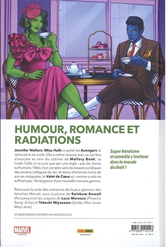 Diablo rend visite à Miss Hulk... mais pourquoi aurait-il besoin d'une avocate ? Jennifer Walters est chargée de résoudre un immense mystère qui lui réserve de nombreuses surprises ! Et sinon, qui est derrière le retour du Valet de Coeur et que veut-il à la Géante Verte ? La star de la série Disney+ reprend du service, avec une version qui ressemble beaucoup à celle de la série télé, si ce n'est que cette Miss Hulk là ne brise pas le quatrième mur. Mais l'humour et une approche toute particulière du super-héroïsme sont bien présents, avec une Jennifer qui se veut avocate avant tout.