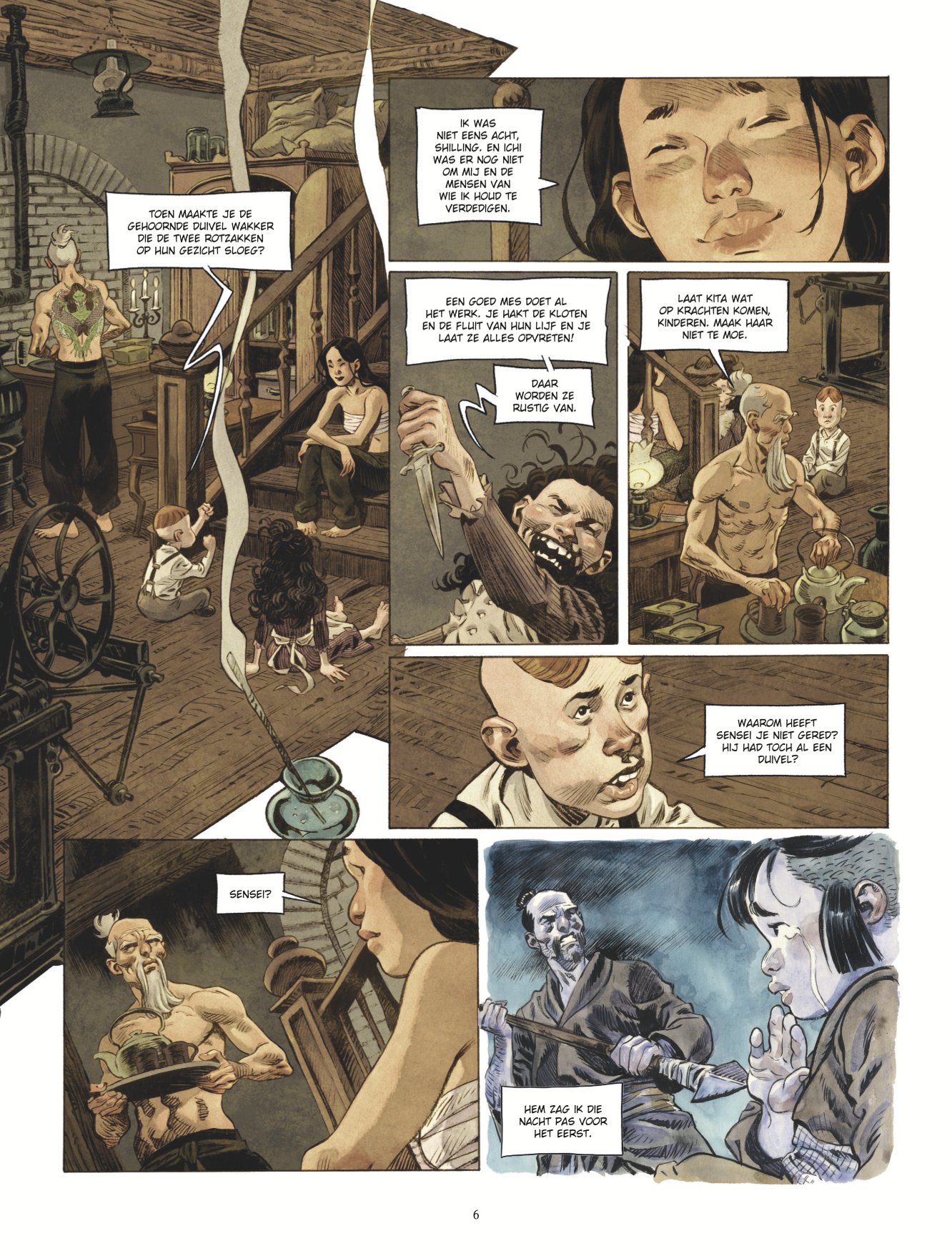 Homs, tekenaar van Spaanse afkomst, was vooral in zijn jeugd geïnspireerd door tekenaars als Uderzo, Franquin, Peyo, Hergé en niettegenstaande hij debuteerde in de comics was dit niet echt zijn ding. Dankzij Dupuis kwam hij in contact met F.Giroud en samen maakten ze een aflevering in de reeks “geheimen” bij dupuis met de titel “ Het Angelus”. Het volgende project die hij in gedachten had was SHI maar Dupuis vroeg hem eerst Milennium te tekenen, dit zou hem meer bekendheid geven om dan zijn eigen reeks op de markt te brengen. Dit bleek inderdaad een schot in de roos te zijn. De adaptie van de roman van S.Larson mocht hij zelf invullen waardoor hij ook veel bijleerde. Na de reeks was het idee van Shi al wat verder gerijpt in zijn hoofd en kon hij samen met zijn vriend Zidrou eindelijk zijn reeks uitwerken. Hij koos de periode, de plaats, de kleren en Zidrou werkte het scenario verder uit. Het einde van deel 4 is het slot van de eerste cyclus. Er was nog zoveel te vertellen en nog zoveel ideëen dat ze op aanraden van de uitgever er nog een tweede cyclus aan toevoegen…. Goed nieuws dus voor de fans. Londen, 1858. Terwijl Jay haar proces in de gevangenis afwacht en rouwt om de tragische gebeurtenissen op Trafalgar Square, en Kita en Sensei - net als hun demonen - zo goed mogelijk proberen te herstellen van hun wonden, overkomt Engeland en de hoofdstad van het Victoriaanse Rijk een nieuwe tragedie. Een enorme hittegolf laat de Theems opdrogen, teistert Londen en dreigt een cholera-epidemie opnieuw te doen ontbranden. Dat weerhoudt de oprichters van de Angry Mothers er echter niet van nieuwe aanslagen te beramen - waaronder de ontvoering van de zoon van koningin Victoria zelf! Ze strijden ook voor het einde van de kinderarbeid en zoeken naar Jay's dochter. Ondertussen blijft het SHI-teken zich verspreiden op de muren van de stad, om vrouwen en kinderen te verdedigen. Het enige wat ontbreekt is de incarnatie van de vierde demon om definitief wraak te nemen op het Rijk, want zoals het kinderrijmpje zegt: ‘Is ‘t nummer 4, dan denk ik meteen: “Shi” is z’n naam en da’s gemeen.’ Avontuur dat springt van het victoriaanse Engeland naar het heden, met een exotische toets uit Japan. Vier straffe vrouwelijke personages in de hoofdrollen. Josep Homs is de virtuoze tekenaar van Angelus en drie delen van Millennium.