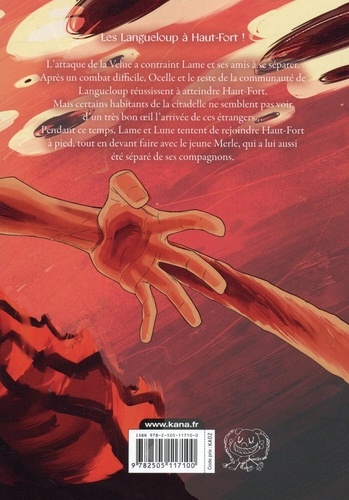 Les Langueloup à Haut-Fort ! L'attaque de la Velue a contraint Lame et ses amis á se séparer. Après un combat difficile, Ocelle et le reste de la communauté de Langueloup réussissent à atteindre Haut-Fort. Niais certains habitants de la citadelle ne semblent pas voir d'un très bon oeil l'arrivée de ces étrangers.. Pendant ce temps, Lame et Lune tentent de rejoindre Haut-Fort à pied, tout en devant faire avec le jeune Merle, qui a lui aussi été séparé de ses compagnons.