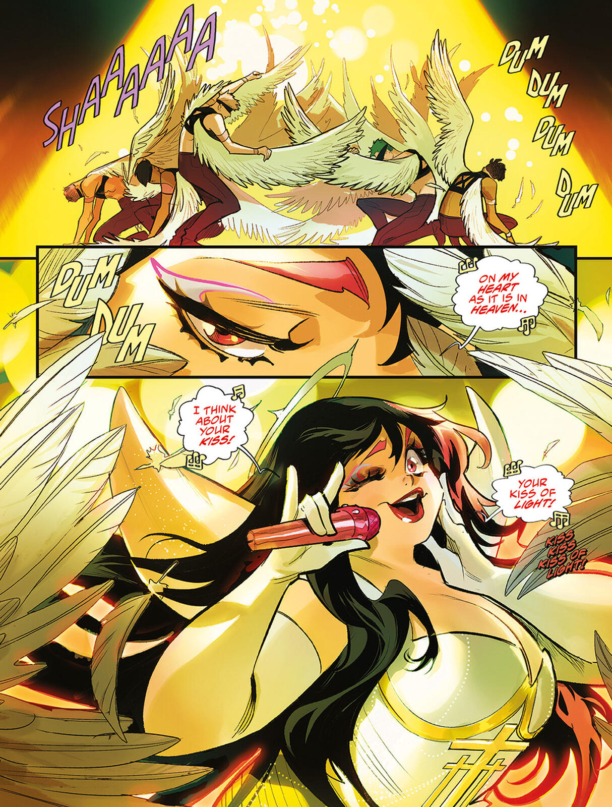 Door het engelachtige en het duivelse te mengen, combineert Mirka Andolfo, winnaar van de Harvey Award, de mythologische urban fantasy van American Gods moeiteloos met de sardonische humor van The Good Place in een gloednieuwe, duistere serie met een verbluffende visuele vertelkracht die zich afspeelt in de schitterende wereld van de popmuziek.