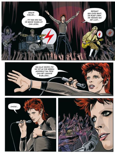 Met stofomslag Getekende Biografie NY Times bestseller over David Bowie. DAVID BOWIE: Stardust, Rayguns, & Moonage Daydreams zijn de grafische memoires van de enige echte superheld, alien en Rock & Roll God: Ziggy Stardust! David Bowie was één van de meest charismatische iconen uit de pop cultuur en verleidde generaties fans met zijn muziek en zijn vertolkingen van counterculture personages. Na zijn dood groeide de fancultus rond Bowie zelfs nog meer. Met zijn muziek alleen al liet Bowie een imposante erfenis na, maar hij dankt zijn plaats in onze verbeelding aan zoveel meer dan dat. Als performer verlegde hij de grenzen dankzij zijn psychedelische esthetiek, zijn larger-than-life imago en zijn geflirt met surrealisme. Deze getekende biografie vertelt over de steile opmars van Bowie's carrière, van totale onbekendheid naar eeuwige roem, parallel aan de opkomst en ondergang van zijn alter ego: Ziggy Stardust. Terwijl The Spiders From Mars langzaam ten onder gaan worstelt Bowie met zijn Ziggy persoonlijkheid. De uitkomst van deze interne strubbelingen zullen niet enkel Bowie zelf, maar ook de hele wereld veranderen.