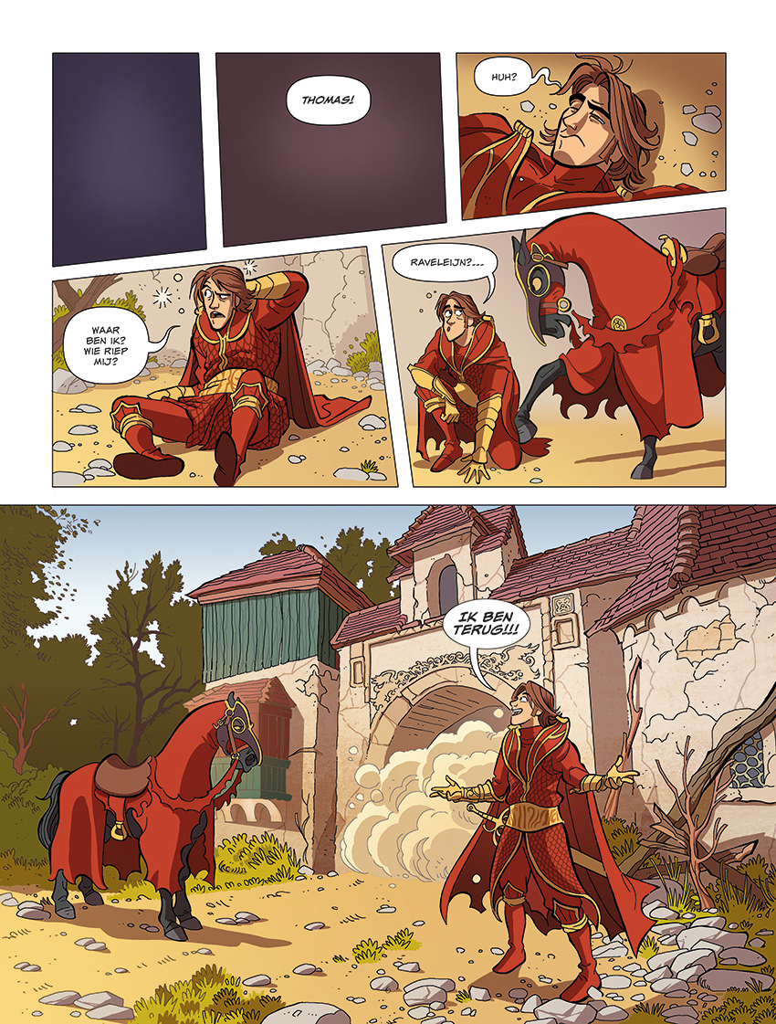 In Raveleijn heerst de vreselijke blauwe builenziekte! Deze is ontstaan nadat de gouden pendel is gestolen uit de Tempel der Raven. Ten einde raad roept Vrouwe Halina de hulp in van de vijf helden: Thomas, Joost, Maurits en tweelingzussen Emma en Lisa. En hond Spike. Hun speurtocht leidt door de Vallei der Vuren, waar zij te kampen krijgen met grote, levensgevaarlijke vuurmonsters. Ze zullen al hun speciale krachten nodig hebben om dit avontuur tot een goed einde te brengen! Een nieuw avontuur in de wereld van Raveleijn. Uniek, want de ruiters zijn voor het eerst in stripvorm! Deze strip is gebaseerd op de spectaculaire parkshow van de Efteling! De Magische Pendel is een compleet verhaal.