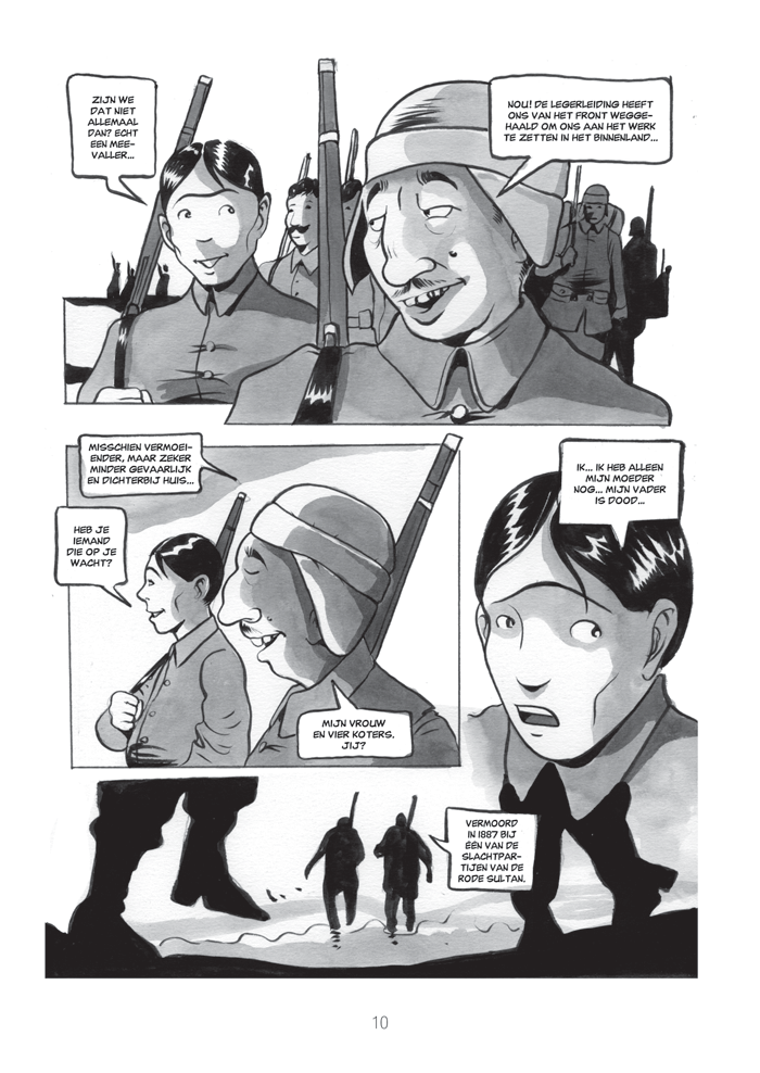 Medz Yeghern, Het Grote Kwaad, is de uitdrukking die de Armeniërs in de wereld vandaag de dag gebruiken voor de periode tussen 1914 en 1916, waarin hun volk systematisch werd uitgemoord en werd gedeporteerd door de regering en het leger van het Ottomaanse Rijk. In deze uitgave beschrijft Paolo Cossi deze gruwelen door middel van drie historische aanknopingspunten: - het personage van Armin T. Wegner, de Duitse soldaat die met zijn fotoreportages de uitroeiing en folteringen waarvan de Armeniërs slachtoffer waren openbaarde aan de wereld, met gevaar voor eigen leven en in strijd met zijn orders - De Armeense poging tot weerstand, die de geschiedenis is ingegaan als De veertig dagen van de Musa Dagh - Het proces tegen de Armeense overlevende Soghomon Tehliriam, die uit wraak in 1921 in Berlijn Mehemet Talaat Pasja vermoordde. Talaat was de minister van Binnenlandse Zaken van het Ottomaanse Rijk van 1913 tot 1917, en daarna grootvizier (1917-1918). Hij wordt beschouwd als één van de hoofdverantwoordelijken voor de genocide en deportatie van de Armeniërs. De tekeningen en de sobere, onopgesmukte vertelstijl vertellen het verhaal van de uitroeiing waarin de Armeniërs veroordeeld waren tot 'elke doodsoorzaak die men ooit is tegengekomen'.