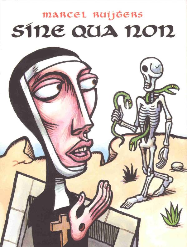 Marcel Ruijters, bekend van Troglodytes en Dr. Molotov, komt met een geheel nieuwe stijl in een nieuw boek. 'Sine Qua Non' is Latijn voor 'dat wat noodzakelijk is om te bestaan'. Het boek is bijna woordloos af, en toe komen er Latijnse spreuken in voor. Net als Troglodytes spreken de beelden voor zich. Vanuit een middeleeuws perspectief schept Ruijters een nieuw universum.