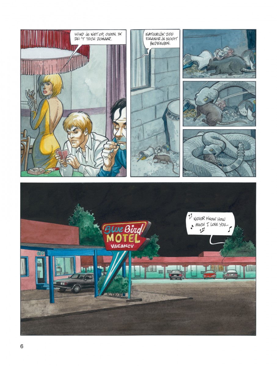 Iedereen die het pad van Jessica Blandy ooit kruiste, uit de weg ruimen. Zo staat het in het contract van huurmoordenaar Soldier Sun en zijn dochter Agripa. Maar in een motel in Salt Lake City loopt het helemaal fout. Na de moord op de eigenaar moeten vader en dochter op de loop in de woestijn. Ze worden op de hielen gezeten door de FBI en de echtgenoot van de vrouw die Agripa vermoordde in het motel. In de ranch van hun volgende doelwit verschansen ze zich ... Slangengebroed is een tweedelige spin-off van Jessica Blandy rond de psychopaat Soldier Sun en zijn nog geschiftere dochter. In hun klopjacht op iedereen waarmee Jessica Blandy te maken kreeg, zaait het bizarre duo dood en vernieling. Renauds tekeningen blijven de zinnen prikkelen terwijl scenarist Gihef (High Security) met een sterke plot de fakkel overneemt van Jessica's bedenker Jean Dufaux.