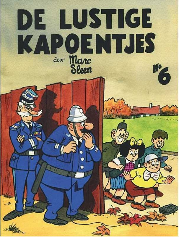 Net als voor de albums in de integrale reeks van Piet Fluwijn en Bolleke schilderde Dirk Stallaert, Sleens rechterhand, ook voor deze gloednieuwe uitgaven mooie covers. De eerste 5 albums met gags uit 1950 t.e.m. 1953 verschenen in 2013. Op 9 februari 1950 nam Marc Sleen de fakkel over van De Moor. Van deze sublieme stripreeks verschenen in ’t Kapoentje van 1950 tot 1965 niet minder dan 784 afleveringen van de hand van Marc Sleen. Uitgeverij Het Volk bracht vanaf 1956 een selectie van de afleveringen in (ondertussen zeldzame) albums maar nooit eerder verscheen een integrale uitgave. De Lustige Kapoentjes zetten de traditie verder van gagreeksen als Perry and the Rinkeydinks (Martin Branner), Sjors van de Rebellenclub (Frans Piët) en Flipke en de Rakkers (Pink, pseudoniem van Eugeen Hermans). Nadat Willy Vandersteen zijn gagstrip De Vrolijke Bengels in 1947 meenam van ‘t Kapoentje naar Ons Volkske bij de concurrentie, herdoopte Bob De Moor de reeks tot De Lustige Kapoentjes.