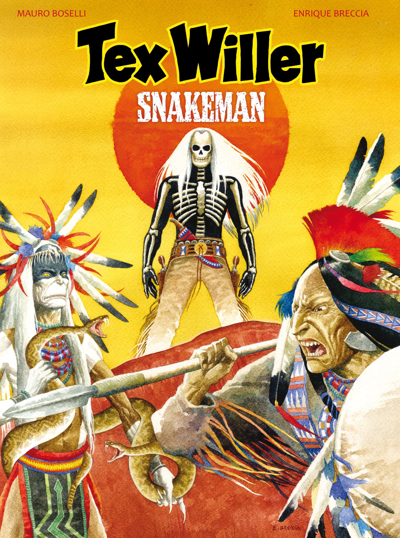 Een bittere vijand neemt het na jaren op tegen de Navaho van Tex Willer. Wanneer Tex vervolgens in de afgrond stort, staan Kit en Tijger er alleen voor. Hun tegenstander Snakeman beschikt over magische krachten waar geen levend wezen tegenop kan. Misschien... dat het de Dood zelf lukt? Nieuw verhaal in de kleurenreeks, getekend door Enrique Breccia die ook al Tex Willer Classics deel 10 heeft getekend. Mauro Boselli is een van de meest productieve scenaristen voor de bekende westernreeks.