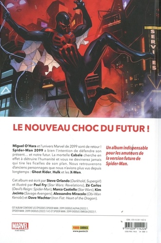 Dans l'univers futuriste de 2099, un Céleste s'écrase à proximité de la ville de Nueva York et attire alors l'attention de beaucoup (trop) de monde. Notamment celle de la maléfique Cabale ou encore du mystérieux Soldat de l'Hiver 13. Mais quel rôle joue Spider-Man dans tout ça ? Avec l'apparition de nouveaux personnages passés à la moulinette 2099 ! 30 ans après son lancement, l'univers 2099 (qui réinventait les plus grands héros Marvel dans un futur pas si lointain) est toujours aussi populaire. Pour fêter cet anniversaire, cette nouvelle saga complète met à l'honneur Miguel O'Hara, le Spider-Man de l'an 2099, et dévoile de nouveaux héros. Assisterons-nous à la naissance d'une nouvelle équipe d'Avengers ?
