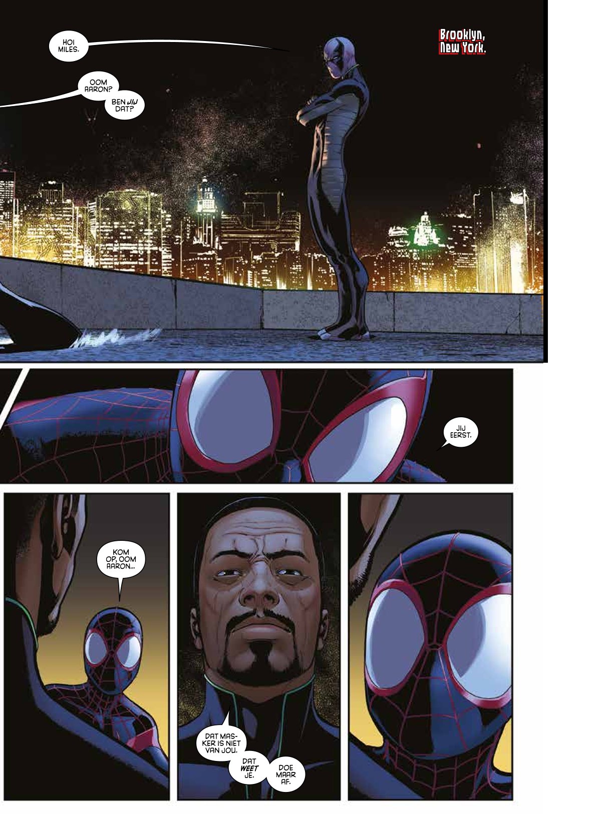 Miles Morales trekt het pak van Spider-Man aan! Voordat Peter Parker stierf, stond de jonge Miles op het punt om op een nieuwe school aan het volgende hoofdstuk in zijn leven te beginnen. Vervolgens gaf een spinnenbeet ook deze tiener ongelooflijke spinachtige krachten. Nu is Miles in een wereld terechtgekomen die hij niet begrijpt, met alleen zijn instinct en een klein dingetje zoals verantwoordelijkheid als zijn gids. Kan hij Peters nalatenschap als Spider-Man waarmaken?
