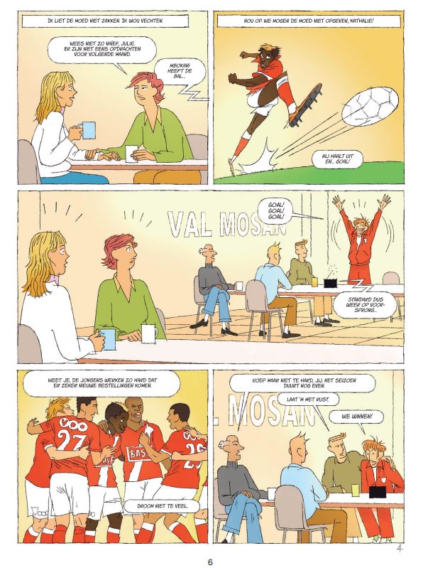 Grote Voetbalclubs in Europa! Een drieluik over Standaard Luik ! In de nieuwe Sportcollectie van Dupuis met verhalen van de grote clubs in Europa verschijnt een drieluik over de Engelse voetbalclub Arsenal F.C. Ideaal voor alle sportliefhebbers en stripfans van deze club en voetbal in het algemeen. De voetbalstrip in samenwerking met Standard Luik! Avonturen waarin werkelijkheid en fictie in elkaar overvloeien, rond voetbalclub Standard. Julie geeft leiding aan gehandicapte arbeiders in de onderneming waarvoor ze werkt. De zaken lopen niet goed en er doen geruchten de ronde over een sluiting. Behalve haar eigen baan staan ook de banen van de gehandicapte mannen en vrouwen op het spel. Ze besluiten allemaal onbetaalde overuren te werken, maar volstaat dat om het bedrijf te redden? Julies vader is een grote Standardfan. Hij overtuigt zijn dochter om met hem en zijn supporterskliek een wedstrijd bij te wonen om haar gedachten wat te verzetten. Julie lijkt op haar moeder en heeft niets met voetbal of met Standard. Ze vindt het eerder grappig dat haar vader zo’n fanatiek supporter is. Omdat Standard ook de passie is van Olivier, een jongen waarmee ze samenwerkt, gaat ze toch mee. Van bij de eerste wedstrijd is ze verkocht! De sfeer, het feest, de gezangen en het dansen… en dat negentig minuten lang! Vanaf dat moment stelt ze alles in het werk om ervoor te zorgen dat Olivier een match kan bijwonen, en zelfs een abonnement krijgt voor de rest van het seizoen. Als hij wordt ontslagen, kan hij zich toch uitleven bij de wedstrijden!