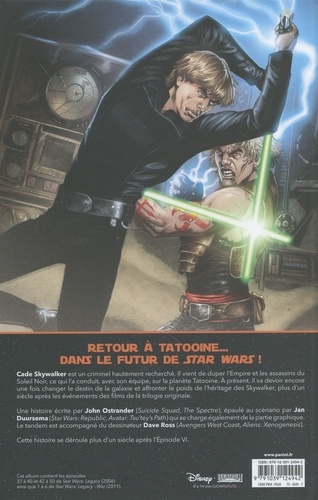 Cade Skywalker est un criminel hautement recherché. Il vient de duper l'Empire et les assassins du Soleil Noir, ce qui l'a conduit, avec son équipe, sur la planète Tatooine. A présent, il va devoir encore une fois changer le destin de la galaxie et affronter le poids de l'héritage des Skywalker, plus d'un siècle après les événements des films de la trilogie originale. Une histoire écrite par John Ostrander (Suicide Squad, The. Spectre) épaulé, au scénario par Jan Duursema (Star Wars : Republic, Avatar : Tsu'tey's Path) qui se charge également de la partie graphique. Le tandem est accompagné du dessinateur Dave Rose (Avengers West Coast, Aliens : Xenogenesis) Cette histoire se déroule plus d'un siècle après l'Episode VI.