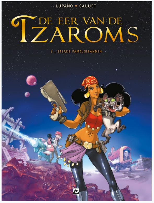 /2. Sterke familiebanden Even voorstellen: de familie Tzarom, beruchte intergalactische boeven. Moeder Lubna, tevens het brein van de bende, is in het gevang beland maar heeft zich verzekerd van de hulp van een jonge bijstandsadvocaat. Die worstelt zich door het dossier, daarbij absoluut niet geholpen door zijn uiterst merkwaardige cliënten die zich niet in het minst voor het proces interesseren. Tenzij het uitdraait op zo’n winstgevend zaakje waarvoor deze familie een fijne neus heeft! De eer van de Tzaroms - Wilfrid Lupano: Op de barricades, De Engelsman die niet van vuurwapens houdt, Alim de leerlooier