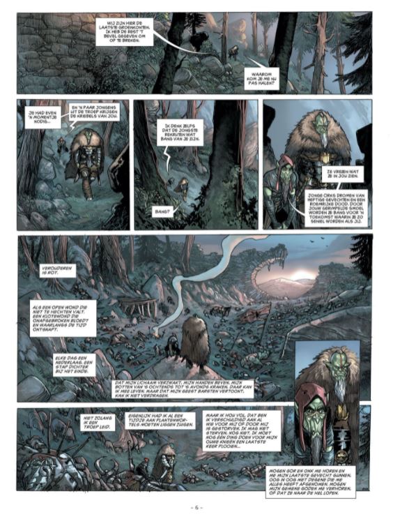 Stilte was eens een legendarische ork, een van de grootste krijgers van het Land van Arran, een van degenen die de dood aan het eind van de gevechten weigerde mee te nemen. Vandaag heeft zijn gezicht meer rimpels dan littekens, de oude ork is niet langer een moordenaar, hij is zelfs niet meer bij zijn volle verstand, maar hij heeft net de wapens weer opgenomen. Een oude, onvoltooide strijd is weer bij hem opgekomen, en deze keer is Stilte van plan hem tot het einde toe te volbrengen. Als zijn oude karkas toch moet sterven, kan hij dat net zo goed doen met bloed in zijn mond en zijn knieën in de modder in plaats van liggend op een bed. van stripscenarist Peru kennen we oa volgende stripreeksen en stripreeksen waar hij aan meewerkte 1. Broceliande 2. Elfen 3. Medicis 4. Orks en Goblins 5. Mjollner 6. West Legends 7. Zombies Van striptekenaar Créty kennen we oa volgende stripreeksen en stripreeksen waar hij aan meewerkte : 1. Conquests 2. Drakenbloed 3. Orks en Goblins 4. Dwergen 5. Steen der Chaos