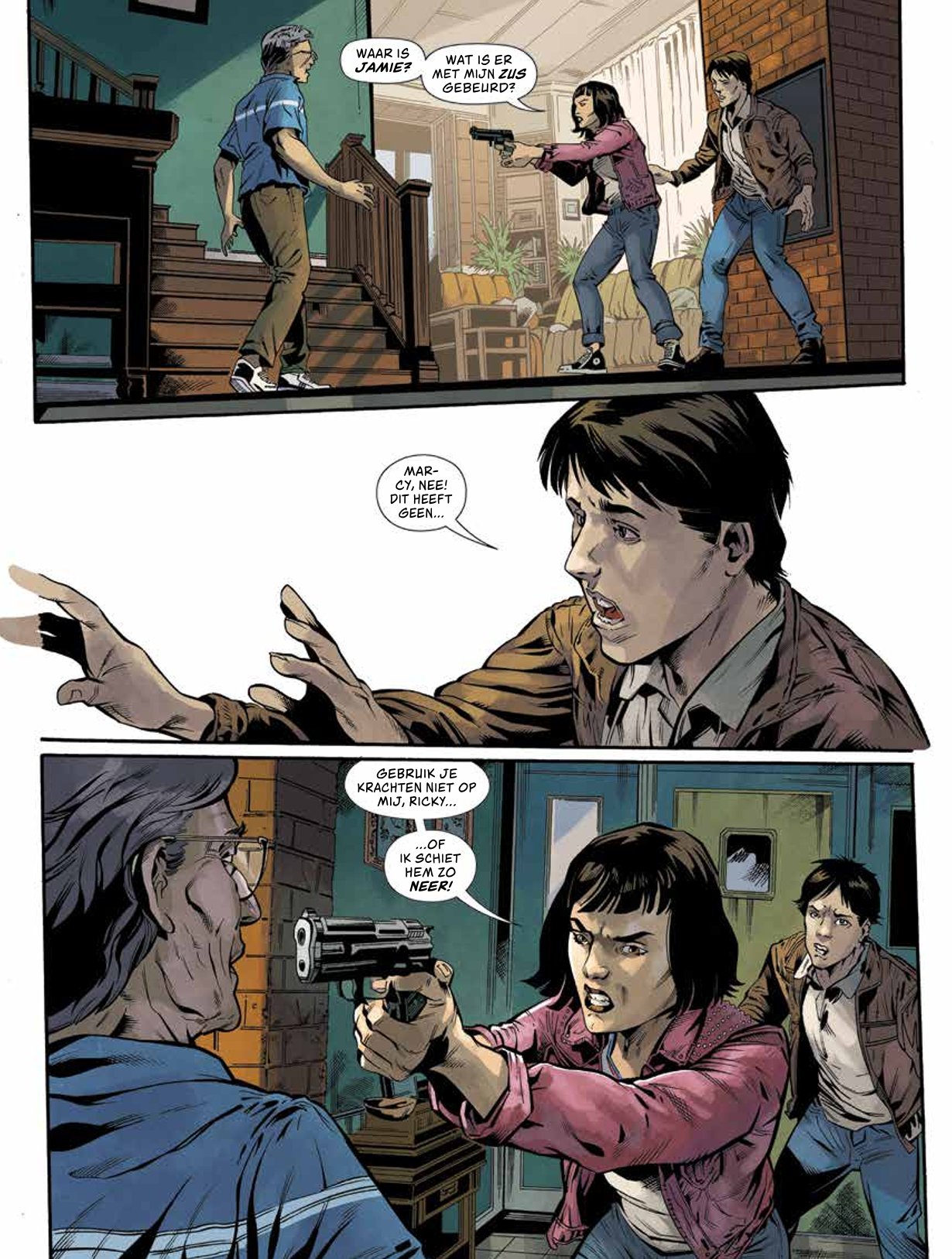 Jaren nadat ze zijn ontsnapt uit Hawkins Lab, streven twee voormalige proefpersonen van Dr. Brenner ernaar om een normaal leven te leiden. Wanneer het nieuws hen bereikt dat het lab is gesloten, beginnen ze aan een angstaanjagende zoektocht naar Nine, een krachtige pyrokineticus. Haar geest is gebroken en zij dreigt hen allemaal te verbranden als ze haar niet kunnen vinden en bevrijden uit haar kwaadaardige verbeelding. Stranger Things: In het vuur Tekst: Jody Houser Tekeningen: Ryan Kelly ISBN 1: 9789464604344 Softcover 48 blz.