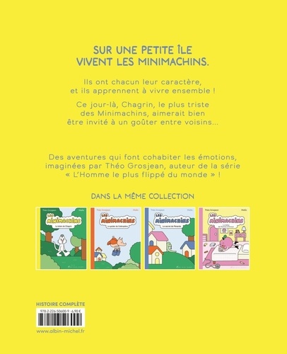 Mini BD, grandes émotions. Sur une petite île vivent les Minimachins. Ils ont chacun leur caractère, et ils apprennent à vivre ensemble ! Ce jour-là, Chagrin, le plus triste des Minimachins, aimerait bien être invité à un goûter entre voisins... Des aventures qui font cohabiter les émotions, imaginées par Théo Grosjean, auteur de la série "L'Homme le plus flippé du monde ! "