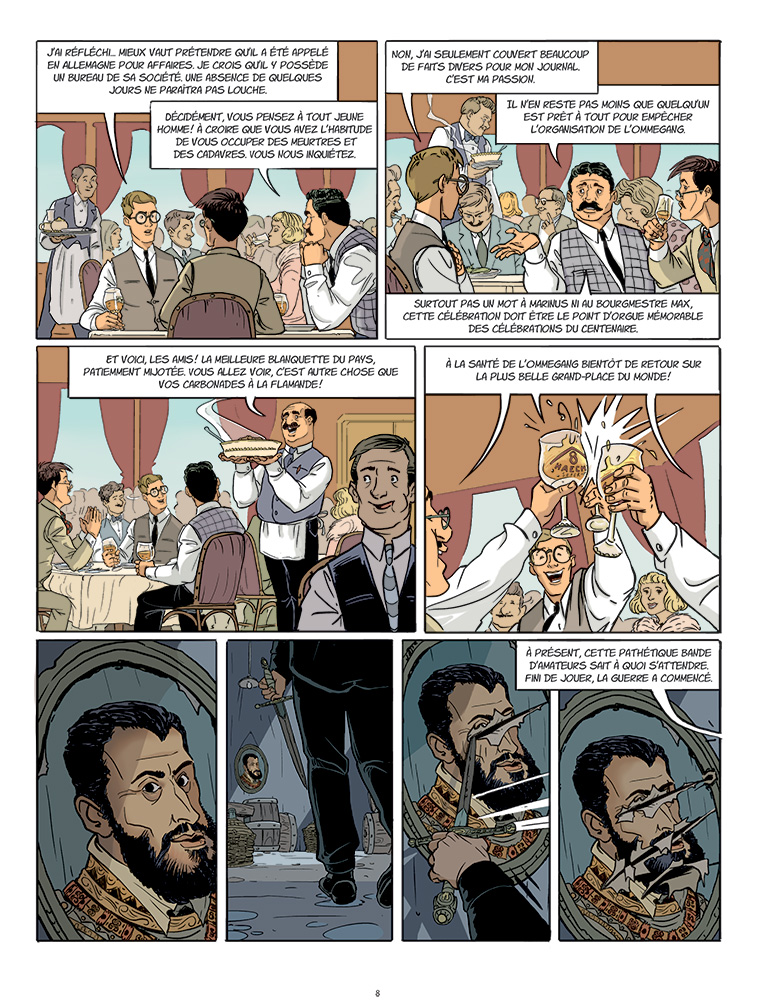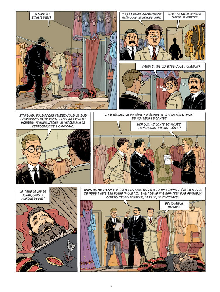 Brussel, 1930. Na 145 jaar afwezigheid proberen enthousiastelingen de Ommegang, een symbool van de Belgische geschiedenis, nieuw leven in te blazen. Maar terwijl de laatste voorbereidingen in volle gang zijn, wordt tijdens een repetitie een deelnemer vermoord door een kruisboogschot. Stan Stanislas, journalist bij Le Patriote Belge, neemt de zaak onmiddellijk op zich. Terwijl hij de moord probeert op te lossen, gaat de sabotage door. Gaandeweg wordt duidelijk dat een groep samenzweerders de Ommegang wil ontwrichten en wie weet zelfs België wil destabiliseren. Wie trekt aan de touwtjes van dit complot? Waarom ontketent deze onschuldige historische viering zoveel geweld? Stan en zijn vrienden zullen het moeten opnemen tegen een slinkse dreiging waarvan het doel weleens veel groter zou kunnen zijn dan gewoon een stoet afgelasten...