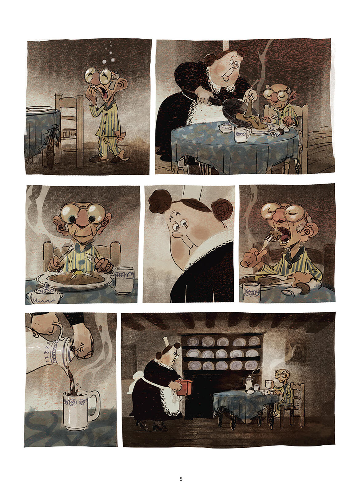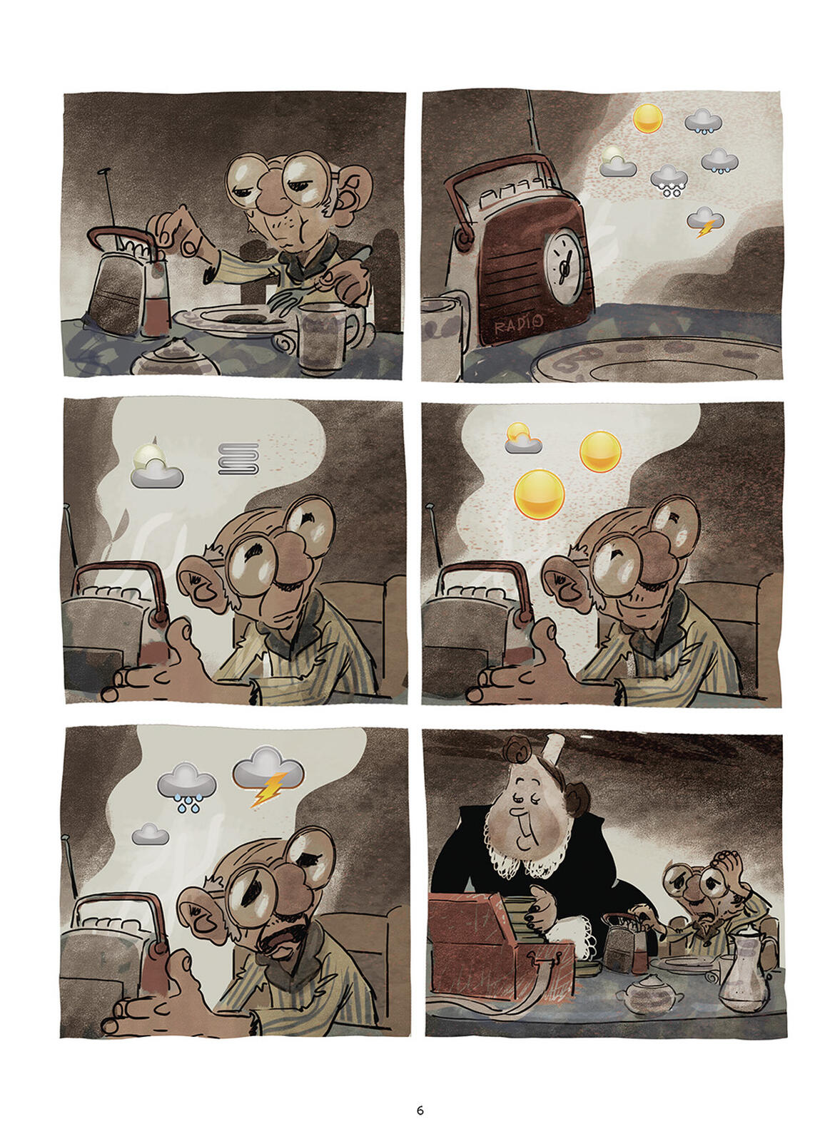 Dat Een oceaan vol liefde geen tekst heeft, is geen gimmick, maar een briljante zet. Scenarist Lupano, normaal een meester in snedige dialogen (zie Krasse knarren), laat zien dat hij ook zonder woorden een geweldige verteller is. Dat lukt hem vooral dankzij Panaccione’s tekeningen. Elke gezichtsuitdrukking, elke beweging vertelt een verhaal. De visser, met zijn kleine lijf en zijn grote bril, straalt een soort knullige charme uit die je meteen doet glimlachen. Zijn vrouw is een powerhouse die zonder een woord te zeggen haar stempel drukt op elke pagina.