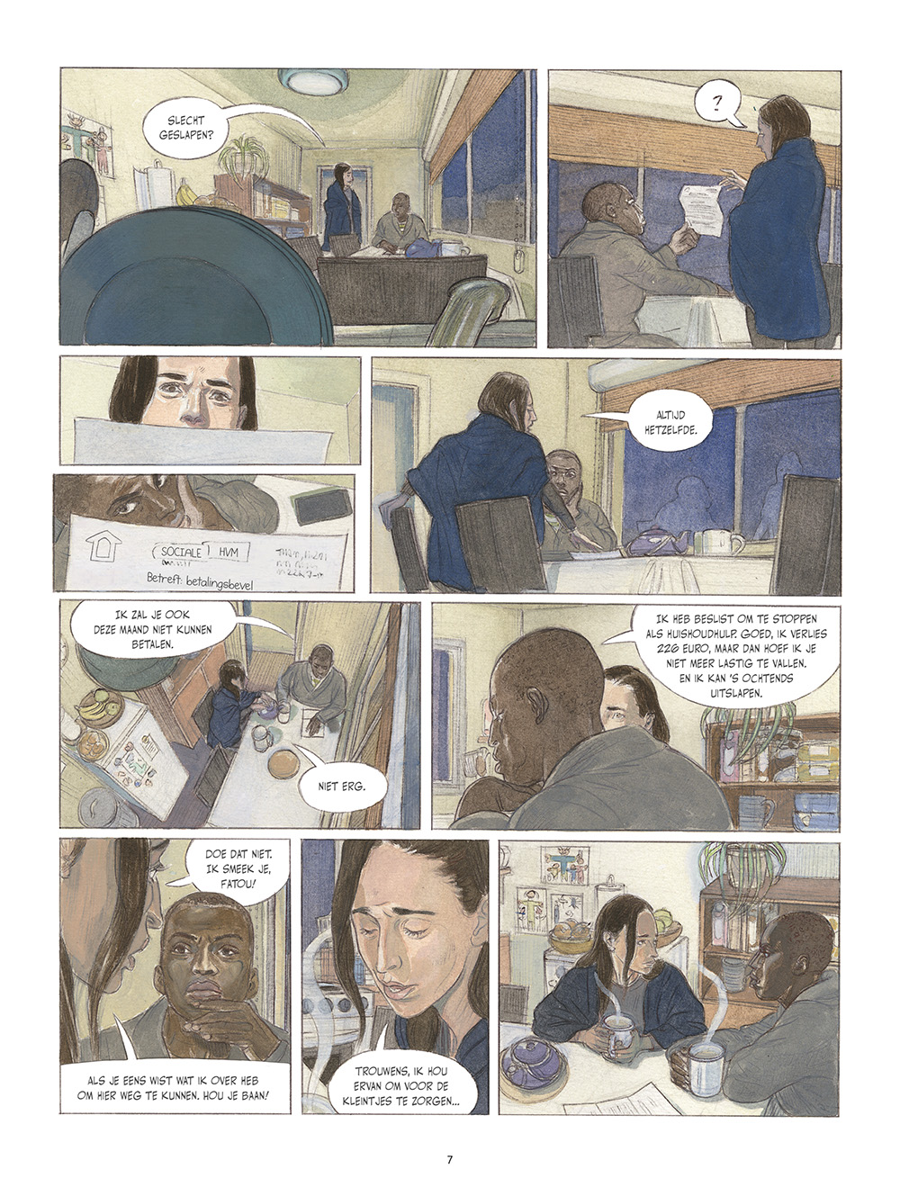 Fatoumata staat nergens echt op de voorgrond, en juist daardoor blijft ze hangen. Als iemand die zich staande probeert te houden in een wereld waar niemand op haar zit te wachten. Het verhaal is klein, maar snijdt diep. bron = 9de kunst.nl