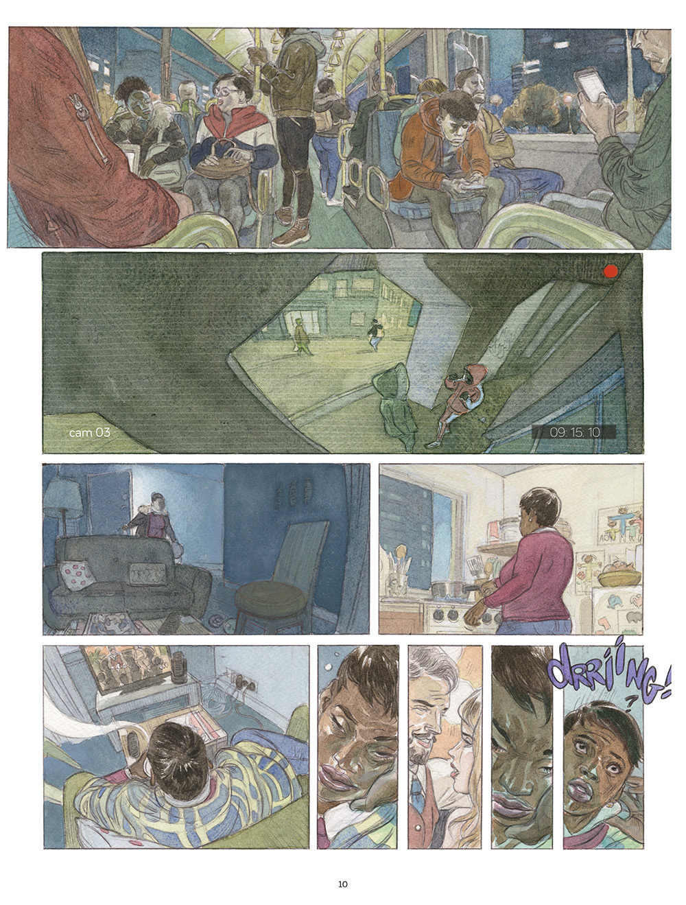 Enerzijds is de grafische stijl terughoudend, realistisch, soms ruig; anderzijds zijn er passages waarin het werk visueel ontploft in lichtval, in kleurgebruik, in schaduwlijnen. De aquareltechniek (of een variant ervan) zorgt dat het werk geen harde lijntjes heeft. Soms leidt die zachtheid tot minder precisie. In sommige scènes lijken gezichten of achtergronden iets te vaag, waardoor personages moeilijk te herkennen zijn, maar vaak werkt het juist in het voordeel van de spanning. Je verliest je in suggestie, wat past bij een thrillerachtige sfeer.