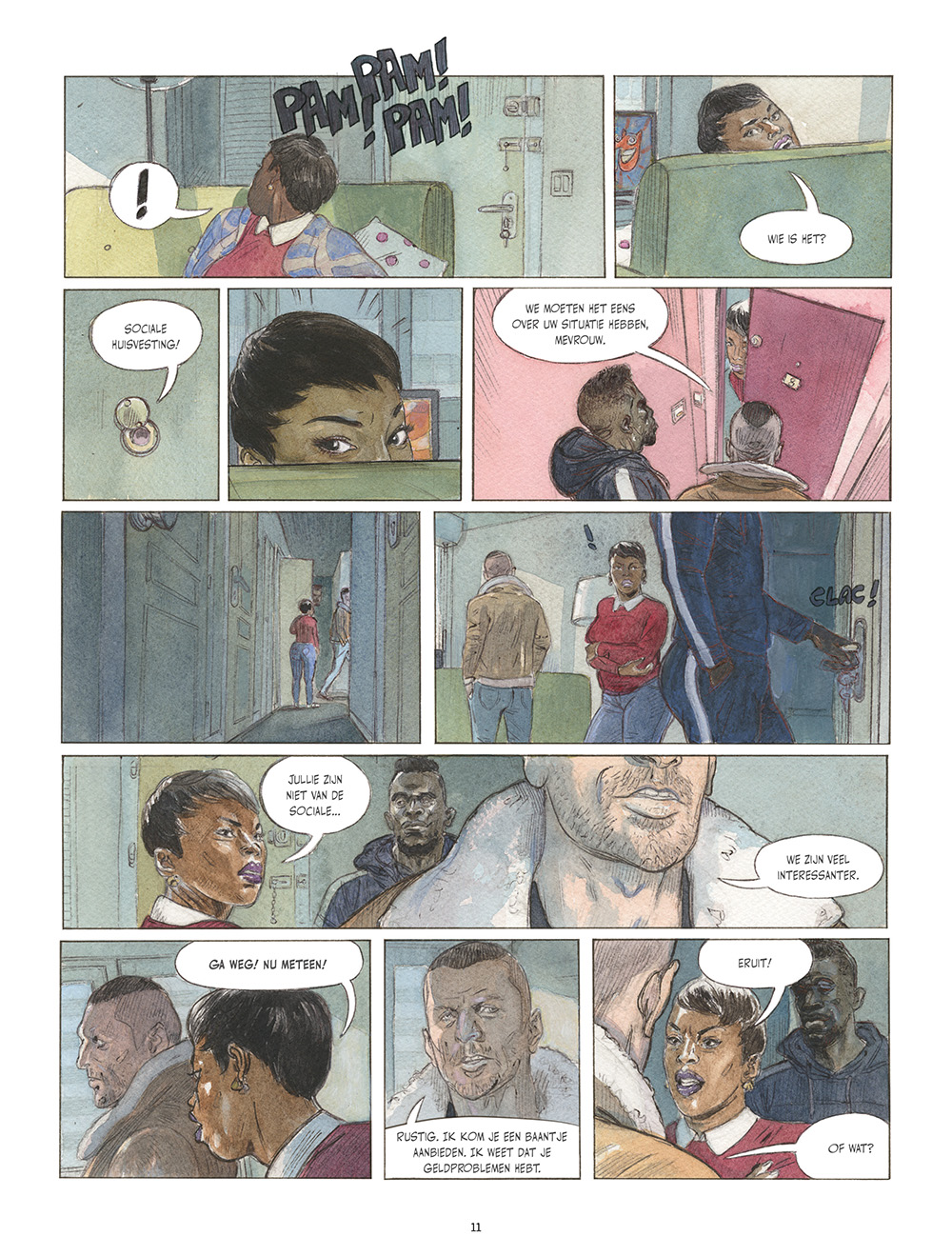 De gevaren sluipen binnen: een politie-inval, manipulaties vanuit de schaduw, verraad op onverwachte plekken. De wisselwerking tussen onderwereld en staat is hier geen hokje “goed versus kwaad”. Fatoumata’s keuzes leiden tot schade, zowel innerlijk als voor haar naasten. Dat maakt het geloofwaardig. Er zijn momenten waar je ernaar verlangt dat de spanningsboog iets minder strak zit, een moment van relatieve rust om adem te halen of om meer context te krijgen van haar verleden. Maar mogelijk wilden de auteurs die ruimte juist niet geven, om de claustrofobie niet weg te laten glippen.