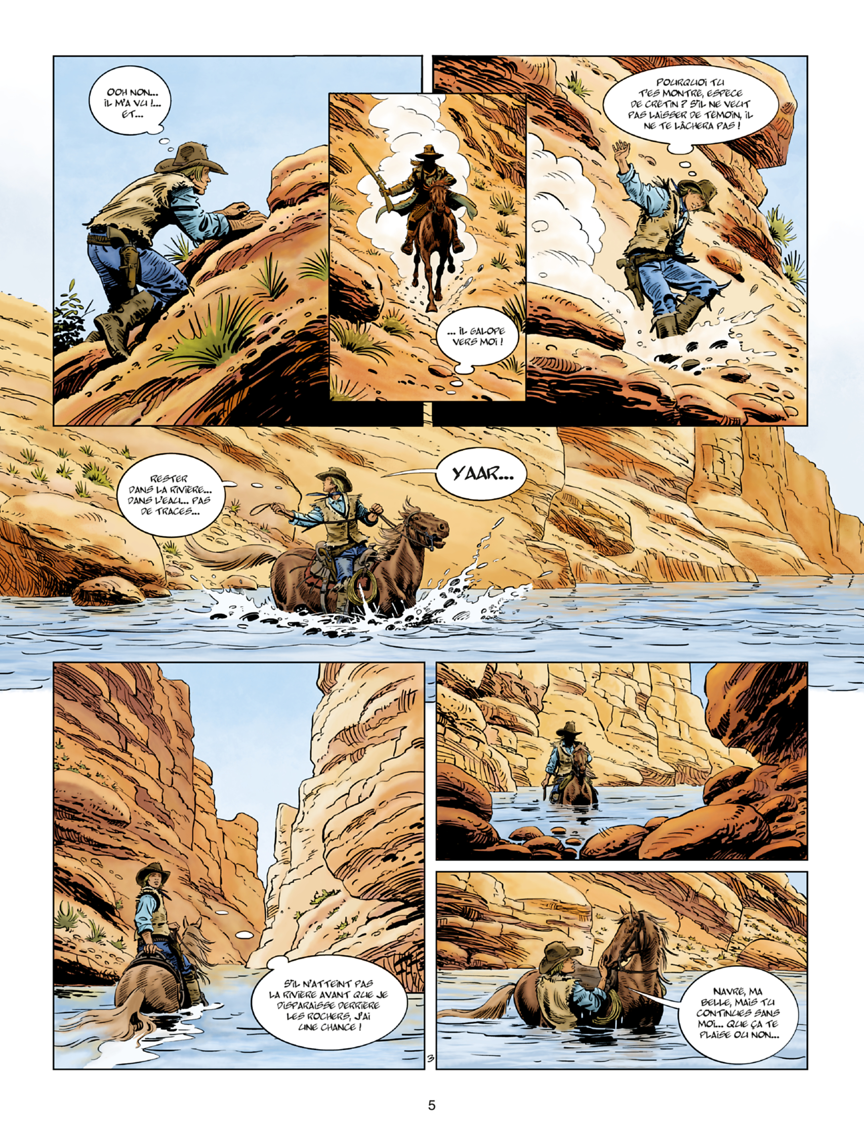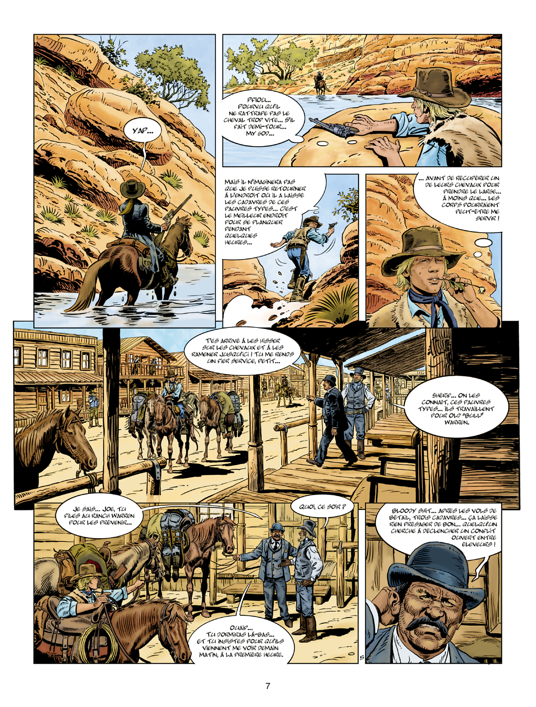 Gemiddelde score 4 / 5Toegevoegde waarde De Jonge Jaren van Blueberry was meer dan de moeite waard, maar de avonturen van de jonge Blueberry duurden bijna even lang als die van de volwassen Blueberry. Eenzelfde spin-off van Roodbaard voegde ook iets toe aan het personage, terwijl de jeugd van Thorgal ons steeds minder kan bekoren. De toegevoegde waarde van de puberende Vikingheld ontgaat ons steeds meer. In het begin waren we nog enthousiast over het werk van Roman Surzhenko, maar de laatste albums stralen vooral een hoog automatische piloot-gehalte uit. Daarom waren we ook wat terughoudend in onze reactie toen we vernamen dat er van de ultieme spaghettiwesterheld Durango een jonge jarenversie zou verschijnen. Deze scepsis is volledig onterecht. Het is dat we het persoonlijk aan Yves Swolfs hebben gevraagd (klik hier voor het interview), maar Surzhenko heeft dit album volledig zelf getekend. Het enige wat Durango-schepper Swolfs heeft gedaan, is het schrijven van een goed verhaal. Westernstrips liggen Surzhenko een stuk beter dan het Thorgal-universum, daarbij ook geholpen door de goede inkleuring van Swolfs' echtgenote van Sophie. Wie goed oplet, ziet soms nog wat schoonheidsfoutjes, zoals de grote ogen van bepaalde personages. Maar over het algemeen scoort Surzhenko met zijn krachtige tekeningen een ruime voldoende. Extra knap voor een westerndebuut en nu begrijpen we ook waarom Swolfs hoog opgeeft over Surzhenko's grafische talent. Wat hierbij zeker helpt, is dat Yves Swolfs andermaal aantoont ook een begenadigd scenarist te zijn. We leren Durango kennen wanneer hij als jonge knaap getuige is van een moordpartij door een onbekende schutter. De moord op drie mannen zorgt voor spanningen bij de lokale veeboeren. Wanneer de schutter opnieuw toeslaat, slaat de vlam in de pan en worden er onschuldige indianen bij betrokken. Ondertussen valt Durango door zijn talent als schutter in de smaak bij Warren, een van de grote veeboeren uit de regio. Klassieke ingrediënten zoals twee dochters, waarvan de oudste de meest zakelijke is en de jongste geboren lijkt in het zadel, zorgen voor een diepgang die anders vaak gemist wordt. Dat Durango en de jongste dochter elkaar kunnen bekoren, zal geen toeval zijn. Het tempo is hoog, er gebeurt genoeg, de tekeningen zijn zeer geslaagd en het pakkende verhaal zal bestaan uit drie delen. Durango - De Jonge Jaren debuteert heel verdienstelijk en toont aan dat Jonge Jaren-reeksen zeker een toegevoegde waarde kunnen bieden.