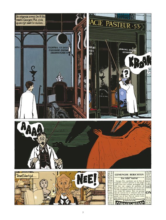 Gemiddelde score 5 / 5Wat een geluk dat deze integrale er is. Vroeger een tweetal Avondroods gelezen, maar nooit de volledige reeks gevonden, en dus nooit aangekocht. Met de eerste 3 verhalen ben ik direct verkocht voor de rest van deze reeks. In een besneeuwd Parijs in de winter 1911-1912 beleeft de heldin op een paar weken 3 verhalen die doen denken aan de boeken van Jules Verne. Alle personages hebben 'een hoek af'. In combinatie met de beperkte tekentalenten van Tardi maakt het vele dingen extreem grappig (iedere moordenaar lacht; een snor, bril of gek hoofddeksel maken van kennissen en vrienden totale onbekenden; de politieinspecteur glijdt van een dak zonder dat er in zijn lichaam beweging komt,...), en net die cassante humor maakt dat ik vol ongeduld wacht tot de tweede integrale verkrijgbaar is.