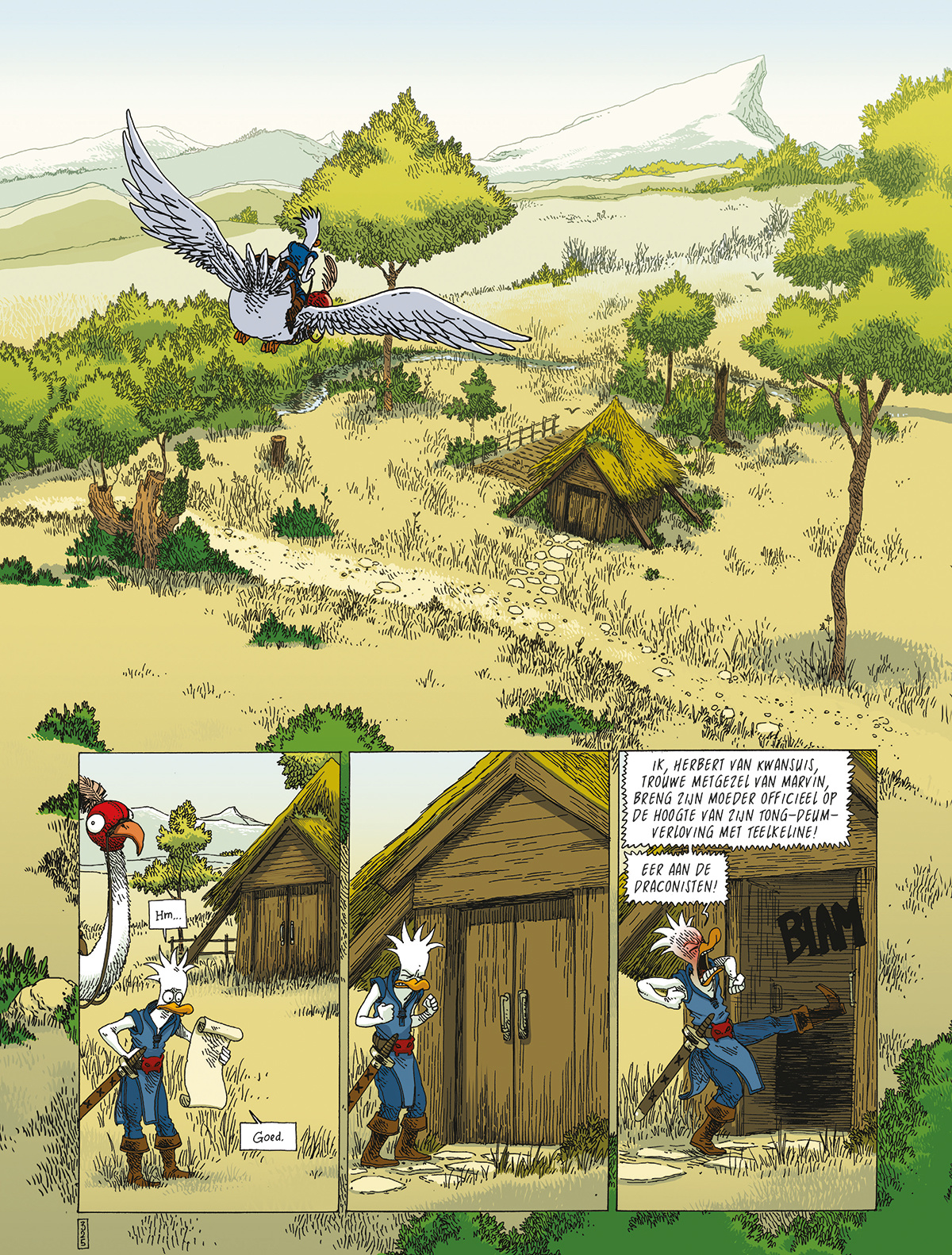 In het absurde en dus altijd vermakelijke universum van de verschillende Donjon-reeksen (Ochtendgloren, Avondschemer, Parade en Monsters) is Zenit de reeks die verhaalt van het hoogtepunt van het Donjon-tijdperk. Volgens de draconistische traditie, belast Marvin zijn makker Herbert van Kwansuis om zijn moeder te vertellen over de verloving van haar zoon met Teelkeline. Maar Herbert ontdekt dat Marvins moeder is vermoord. Zal de dappere eend de schuldige vinden voor de komst van zijn vriend? En lukt het hem om een bloedbad te vermijden en de gevoelige draken die het dorp bewonen niet van zich te vervreemden? Lees van Lewis Trondheim ook Kobijn en Het eiland Bourbon 1730.