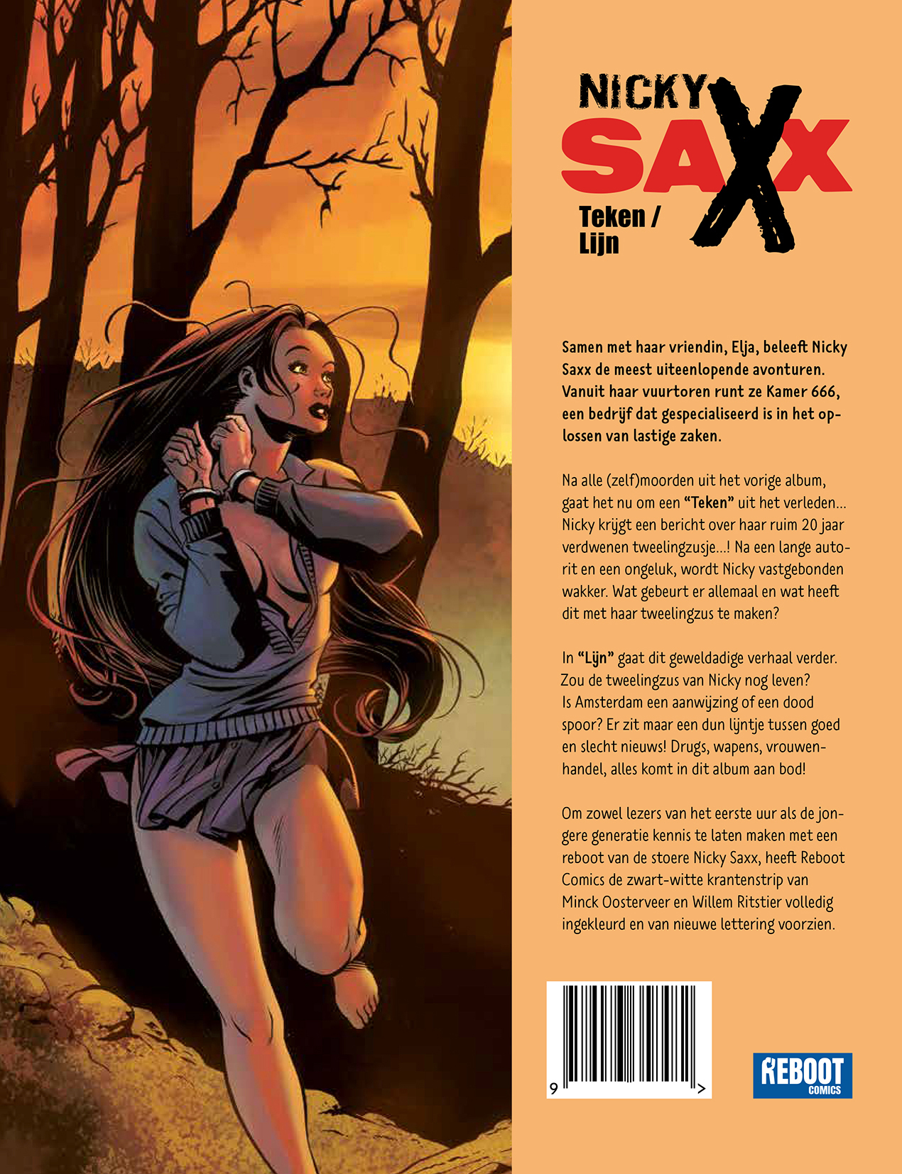 Om zowel trouwe lezers als een nieuwe generatie kennis te laten maken met de avonturen van de stoere Nicky Saxx, heeft Reboot Comics de originele zwart-wit krantenstrip volledig ingekleurd en voorzien van nieuwe lettering.