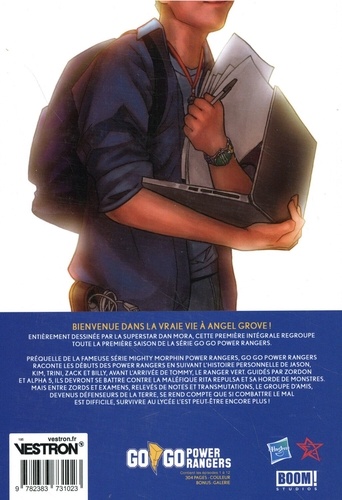 Bienvenue dans la vraie vie à Angel Grove ! Entièrement dessinée par la superstar Dan Mora, cette première intégrale regroupe toute la première saison de la série Go Go Power Rangers. Préquelle de la fameuse série Mighty Morphin Power Rangers, Go Go Power Rangers raconte les débuts des Power rangers en suivant l'histoire personnelle de Jason, Kim, Trini, Zack et Billy, avant l'arrivée de Tommy, le ranger vert. Guidés par Zordon et Alpha 5, ils devront se battre contre la maléfique Rita Repulsa et sa horde de monstres. Mais entre Zords et examens, relevés de notes et transmutations, le groupe d'amis, devenus défenseurs de la Terre, se rend compte que si combattre le mal est difficile, survivre au lycée l'est peut-être encore plus !